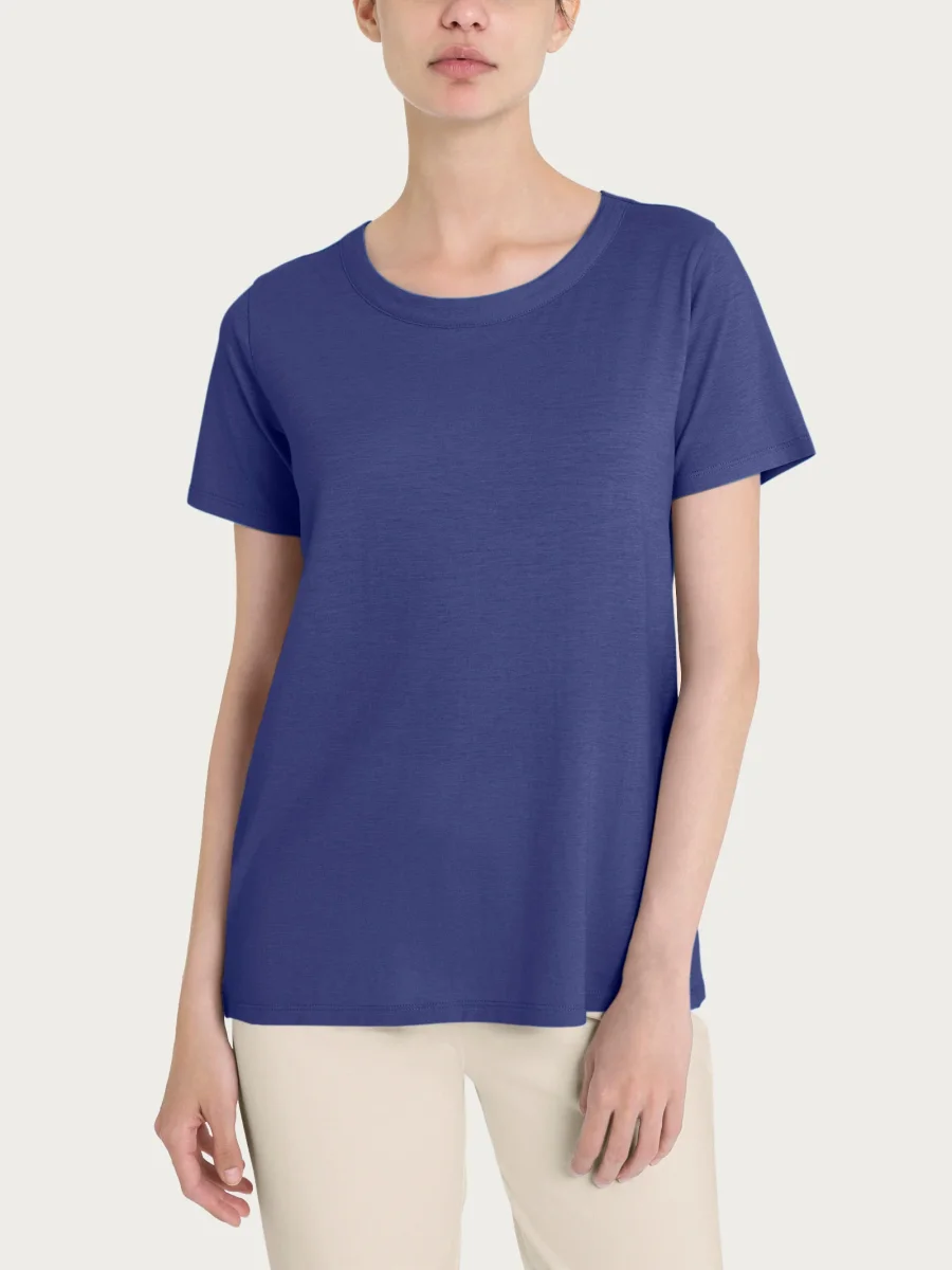 Maglietta girocollo in slub jersey di cotone – Skipper Blue