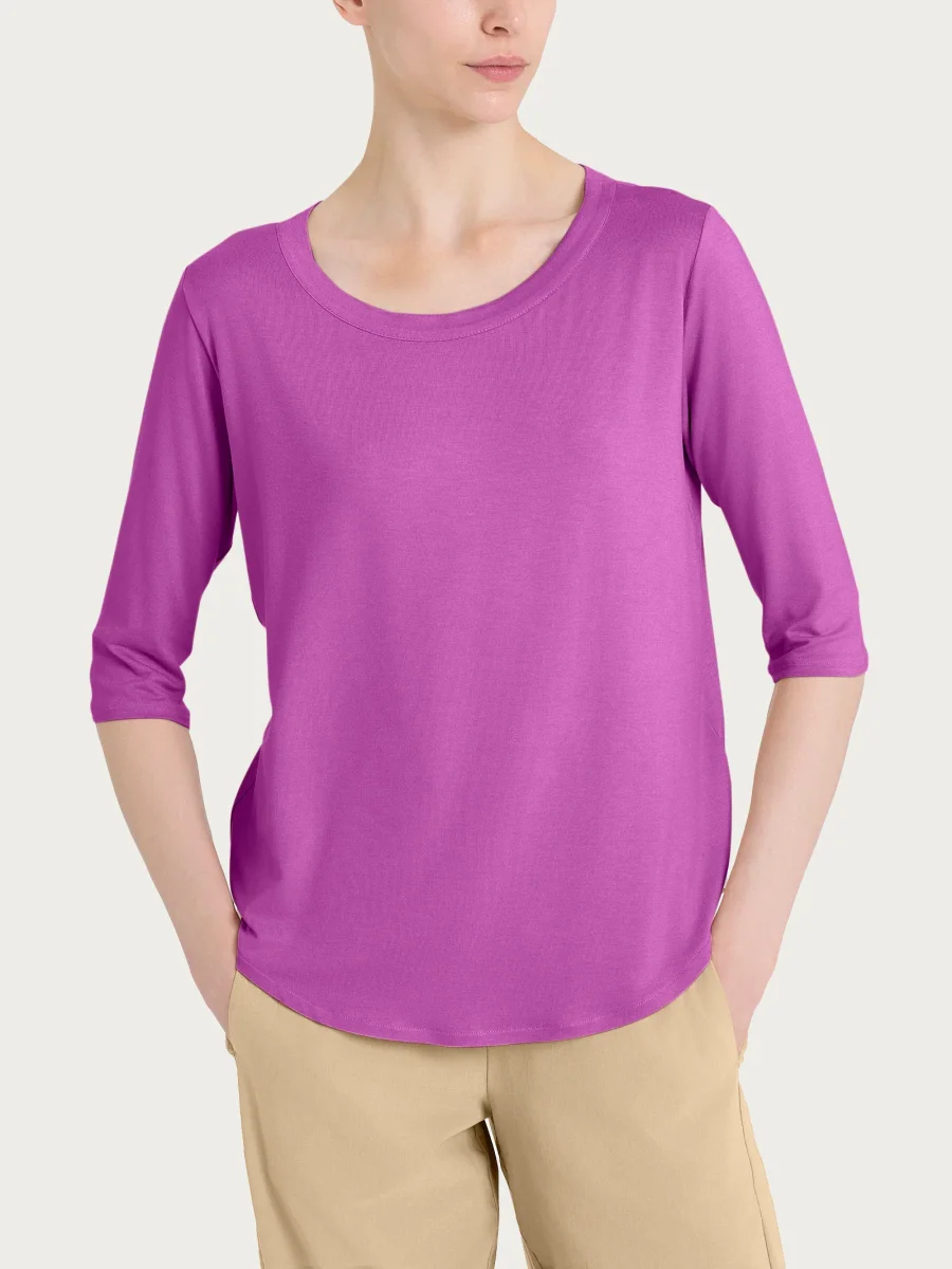 Maglietta girocollo da donna con manica 3/4.