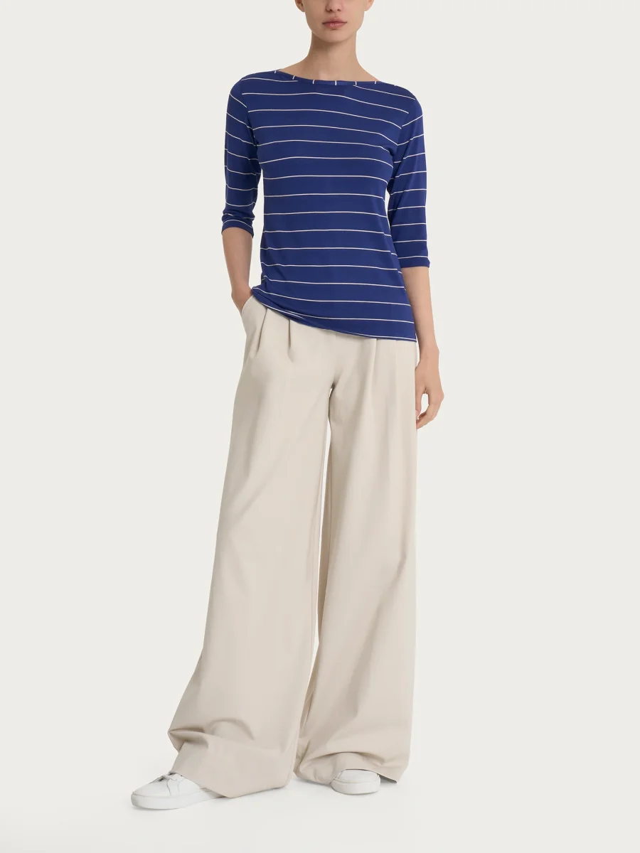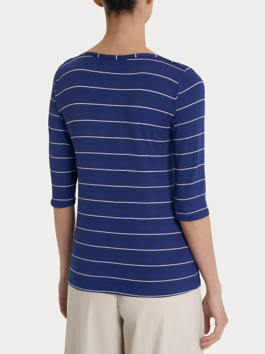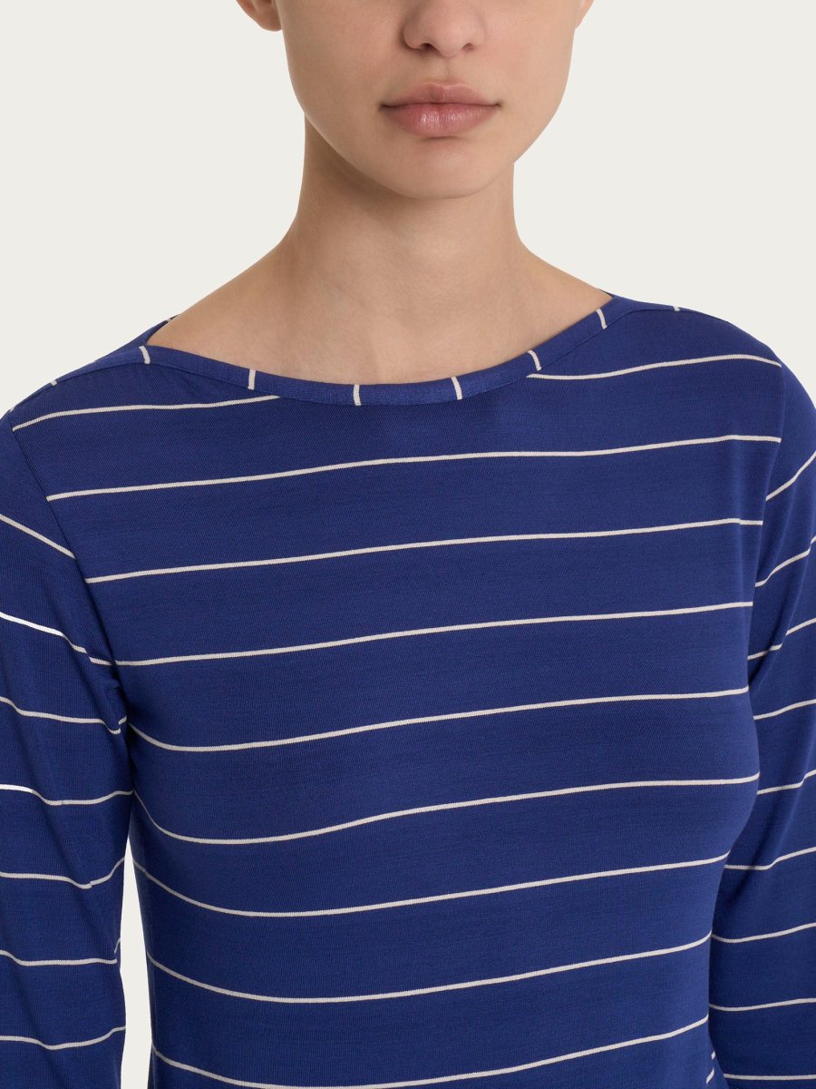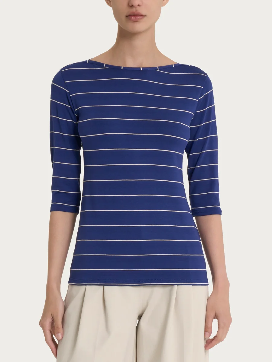 Maglietta marinière con scollo a barchetta da donna e maniche 3/4 in Viscosa Summer.