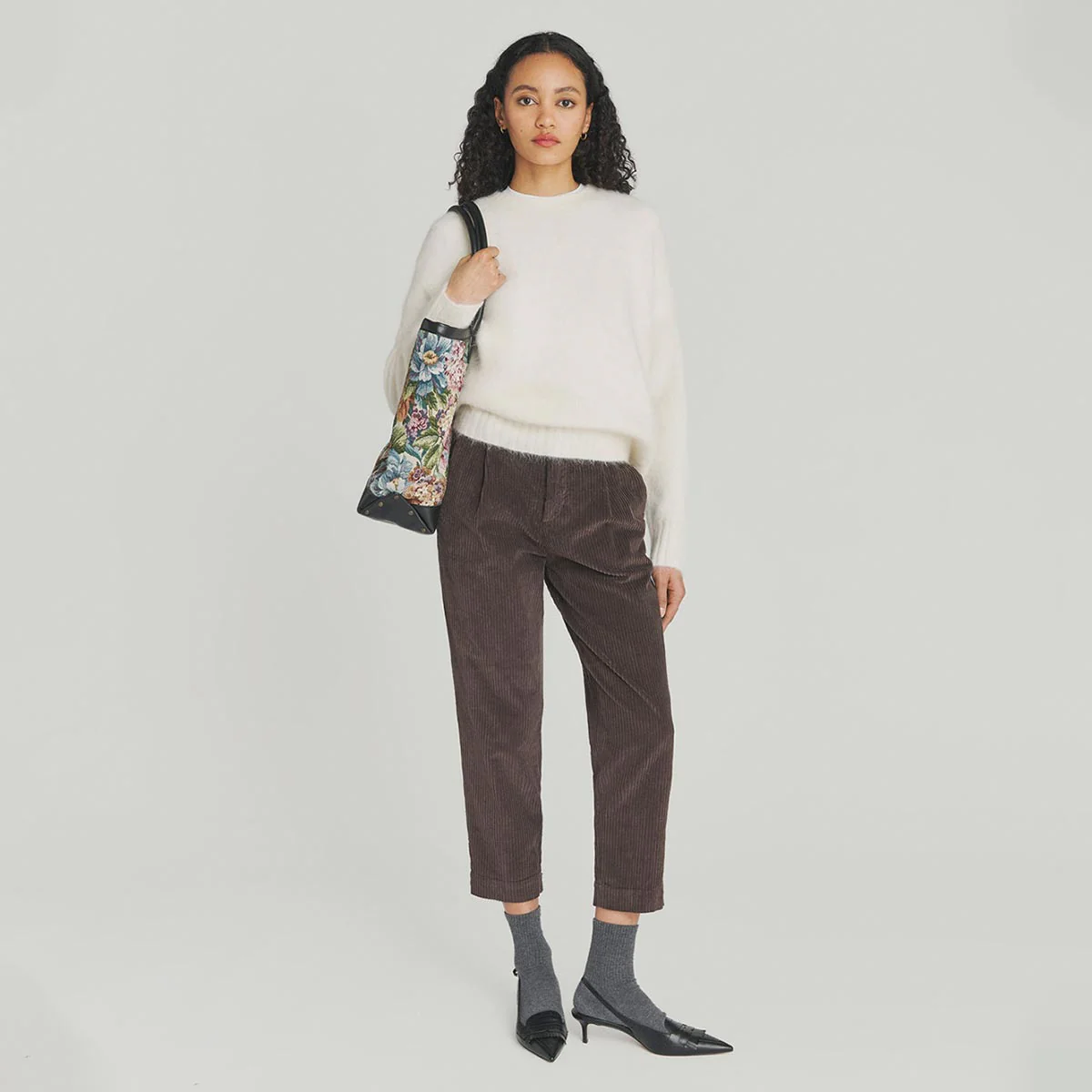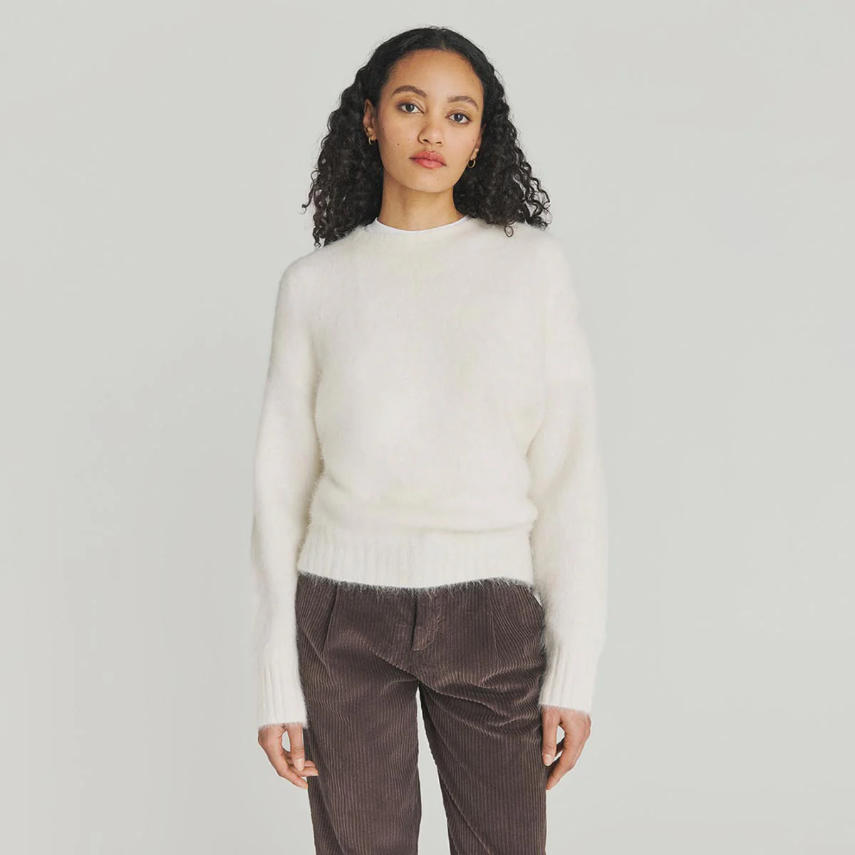 - Maglia girocollo in alpaca con filato brushed tinta unita.