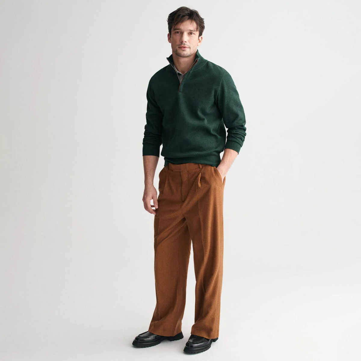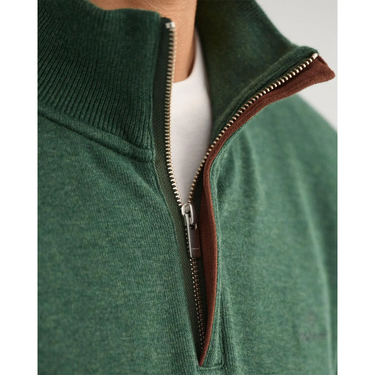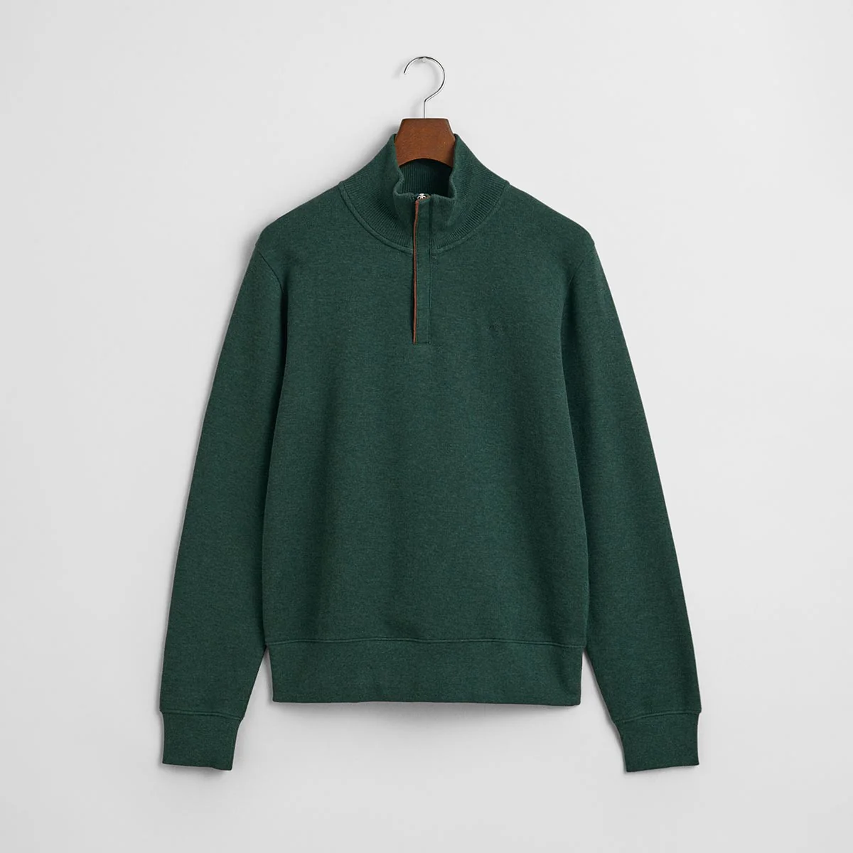 Maglione mezza zip in cotone. Fondo e polsini a coste. Logo Gant ricamato sul petto tono su tono