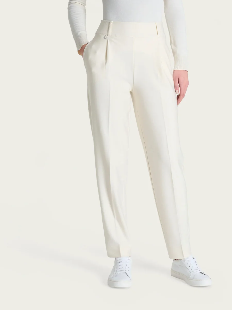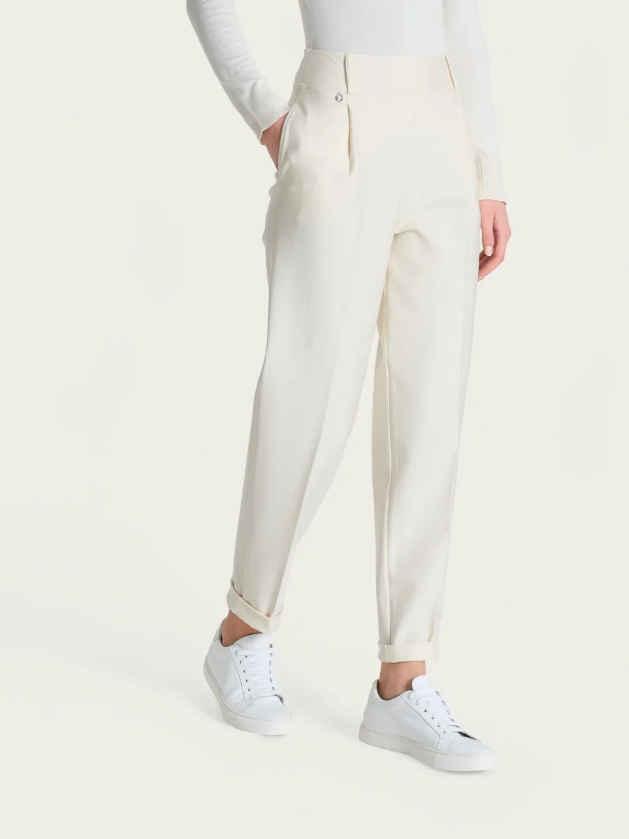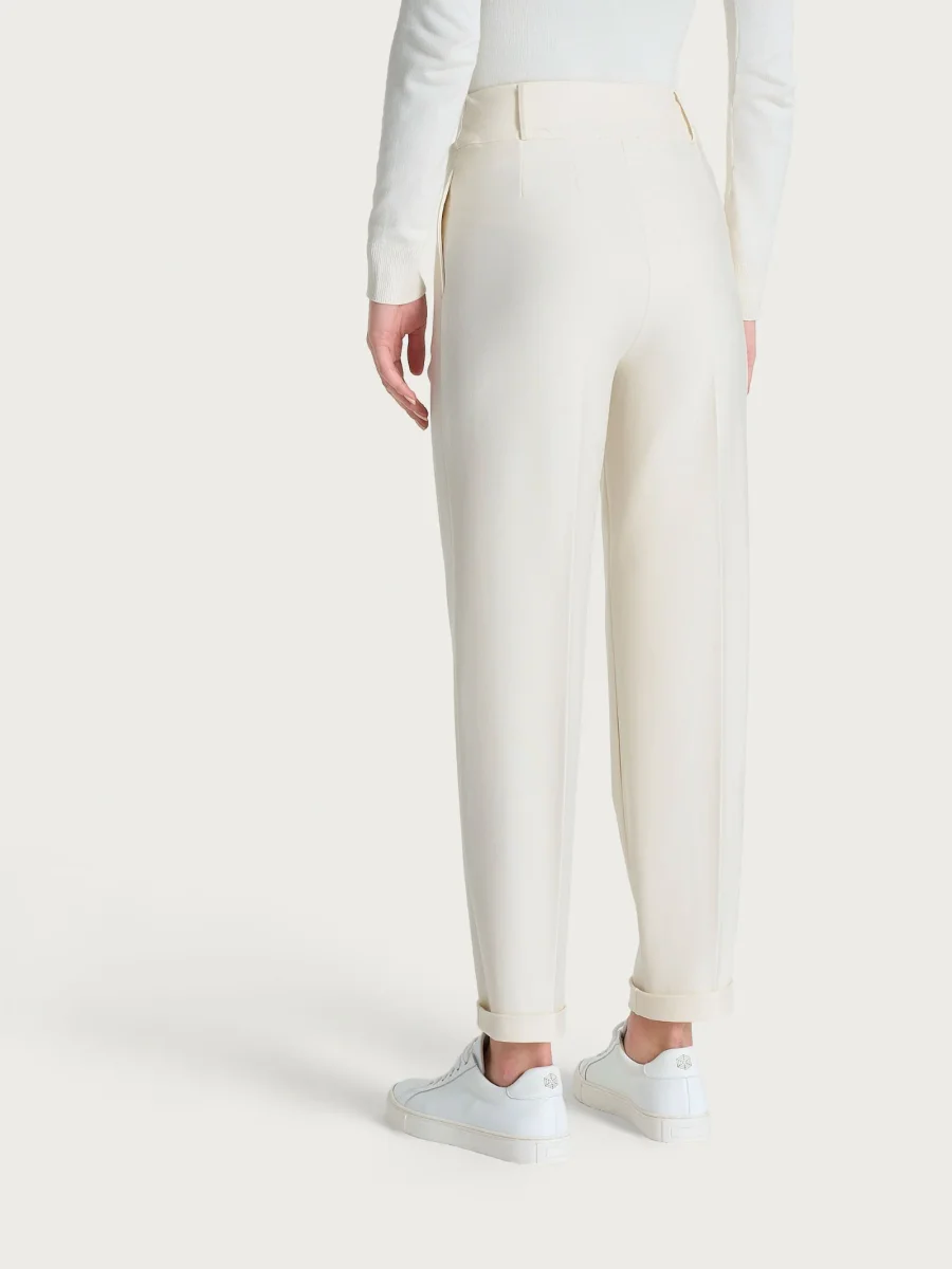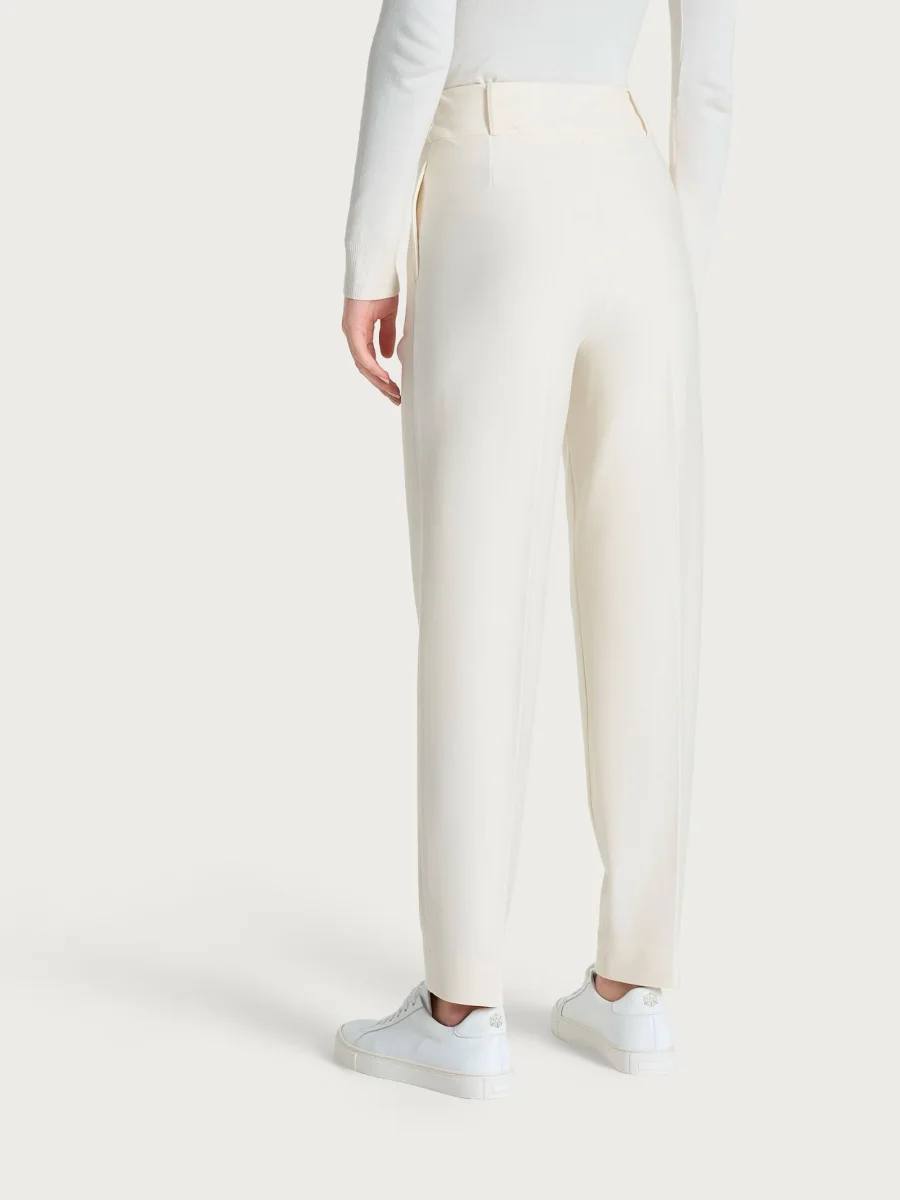 Pantalone a carota con tasche e pinces in Compact – Avorio