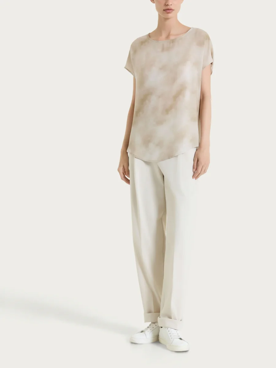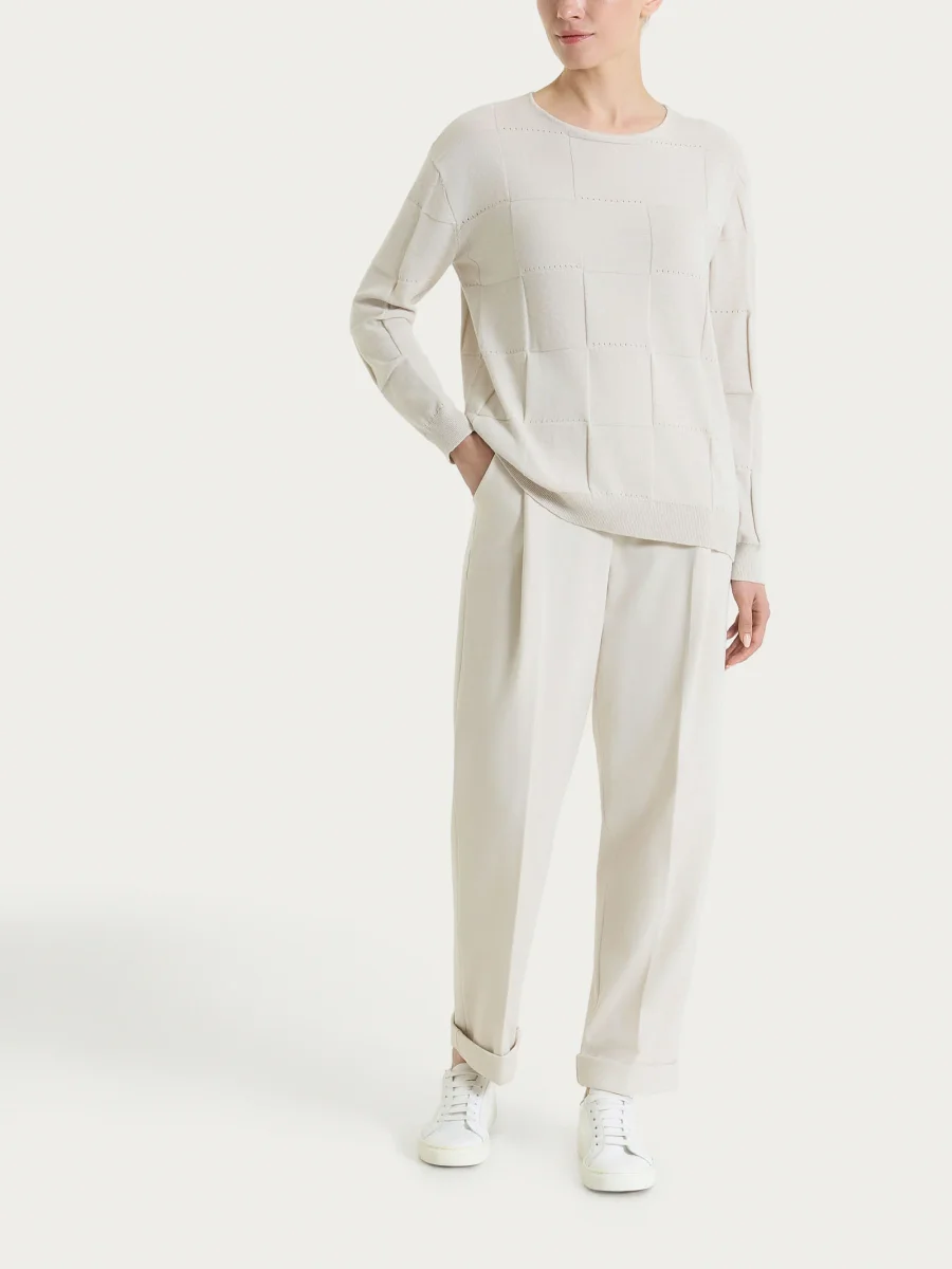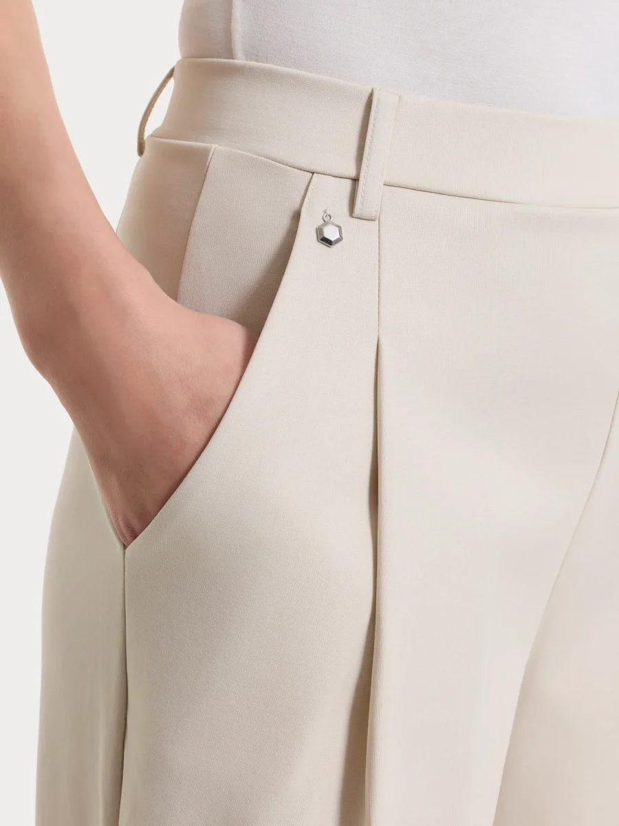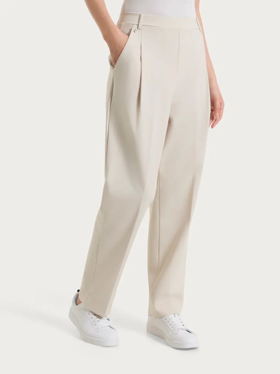 Pantalone a carota con tasche e pinces in Compact Light – Champignon
