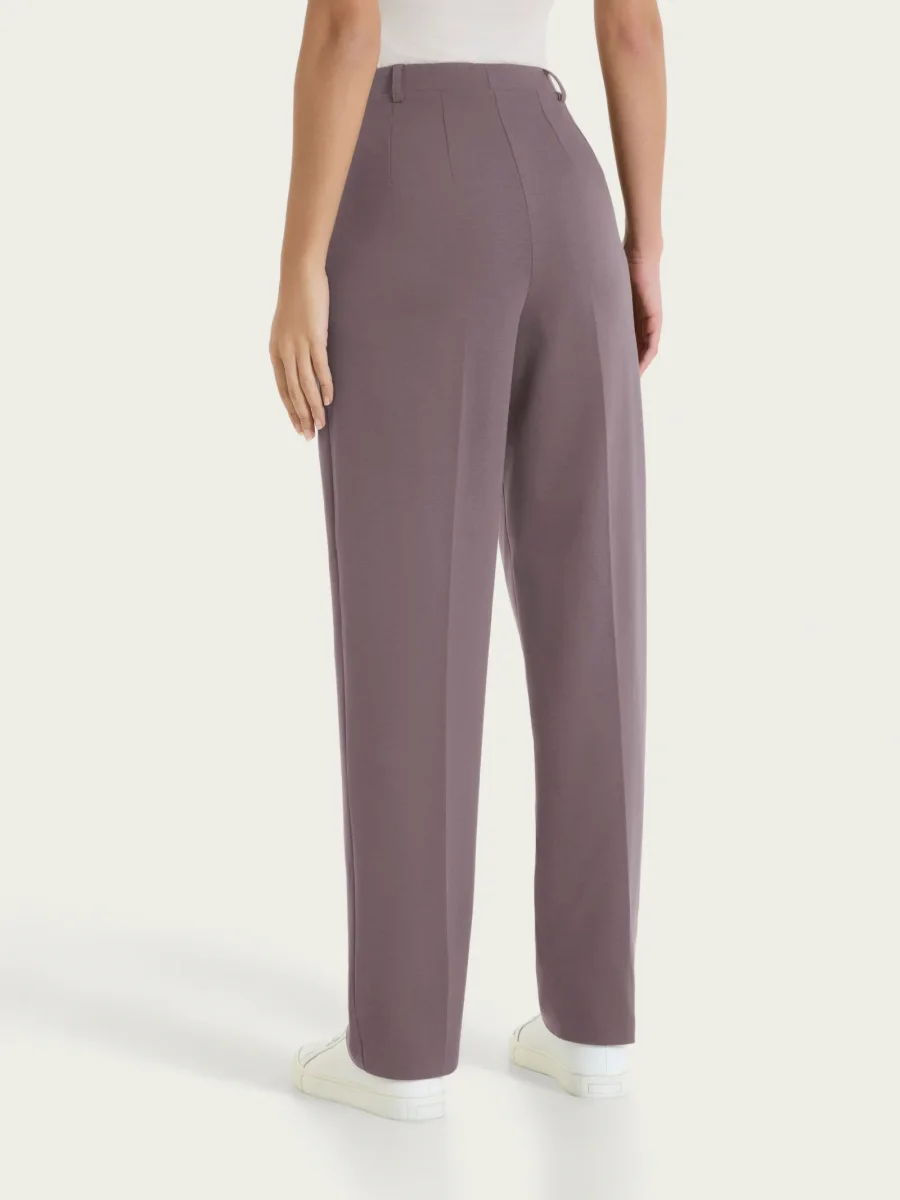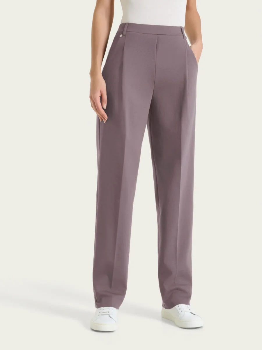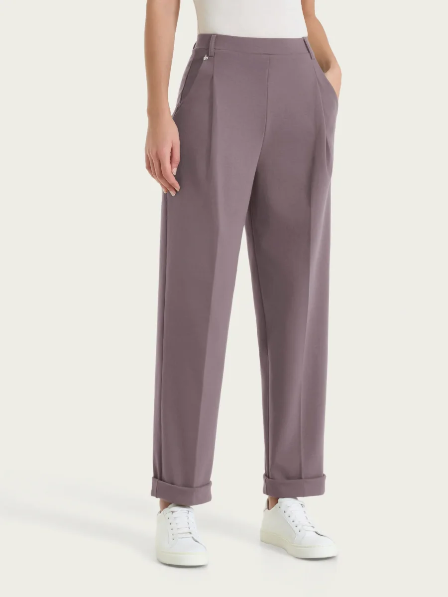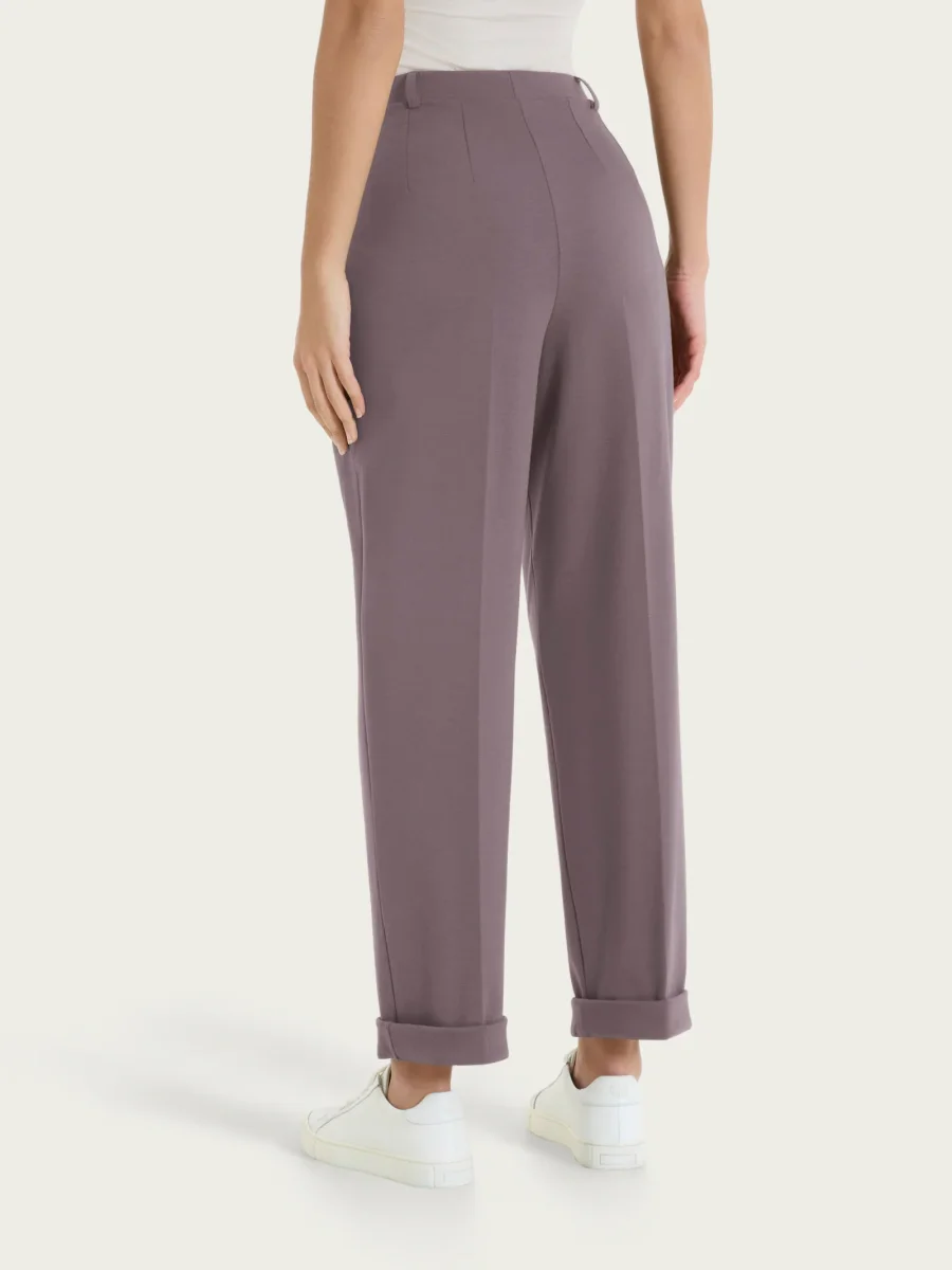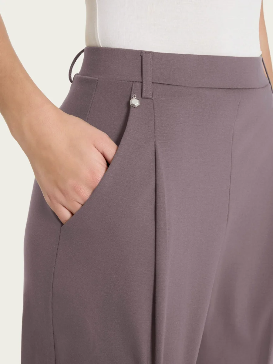 Pantalone a carota con tasche e pinces in Compact Light – Plum Truffle