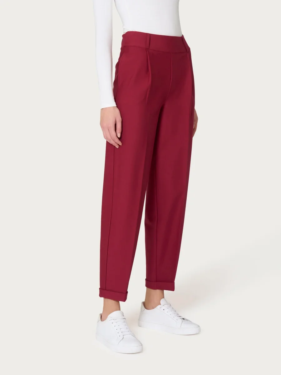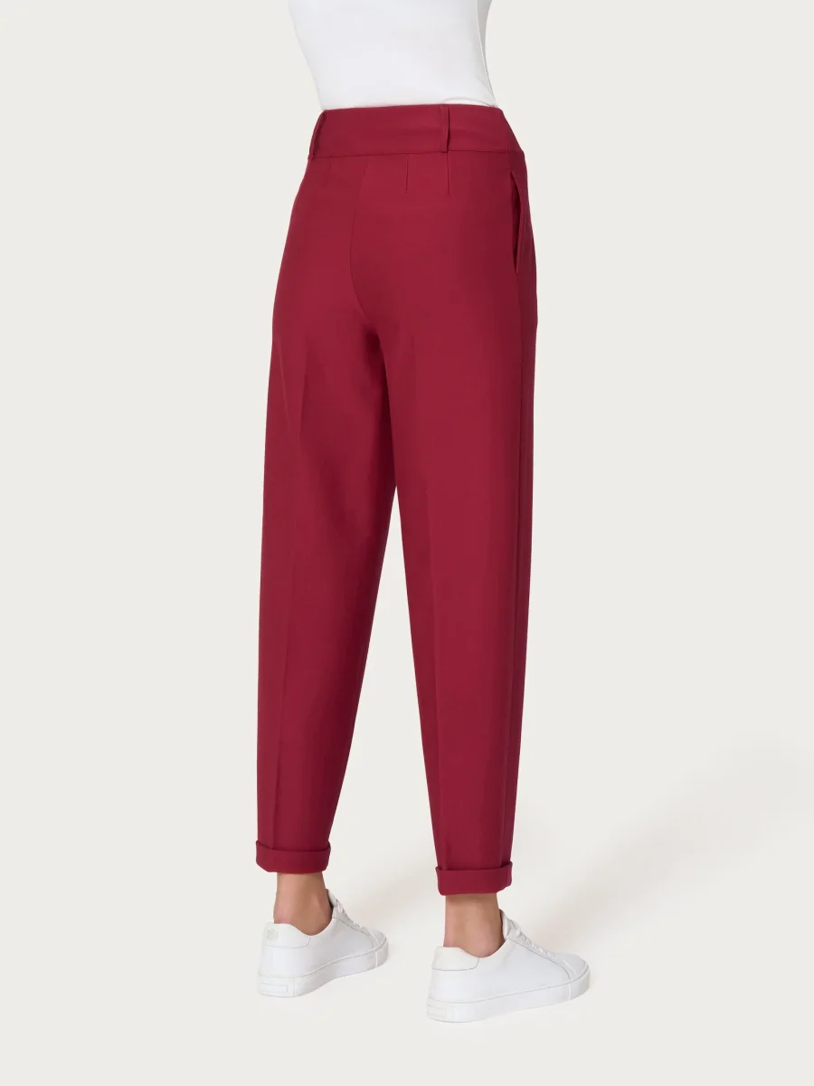 Pantalone a carota da donna con vestibilità tapered, la gamba leggermente ampia si stringe verso la caviglia.