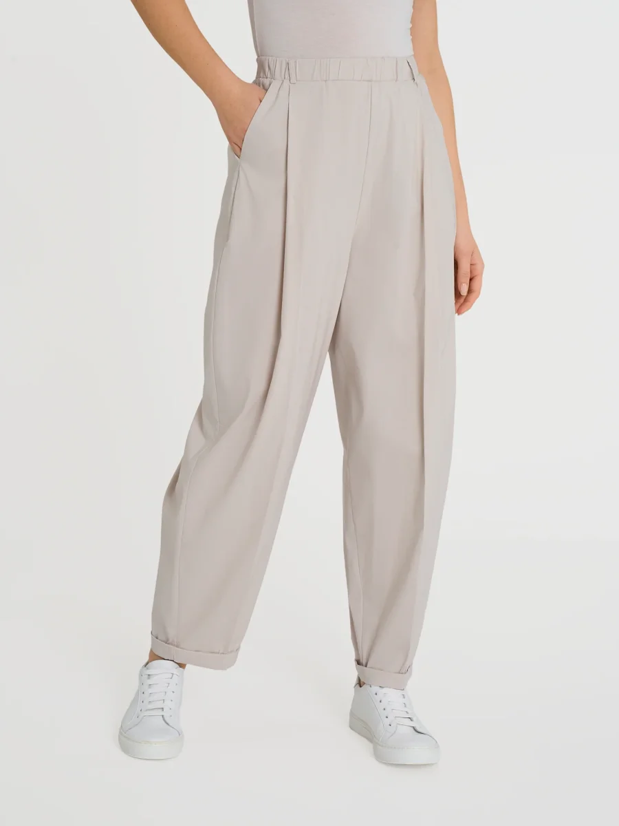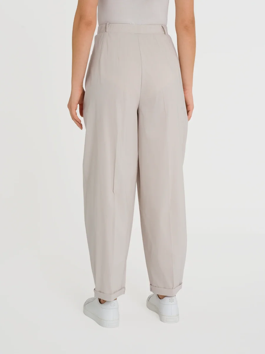 Pantalone a carota con tasche e pinces in Super Fresh – Champignon
