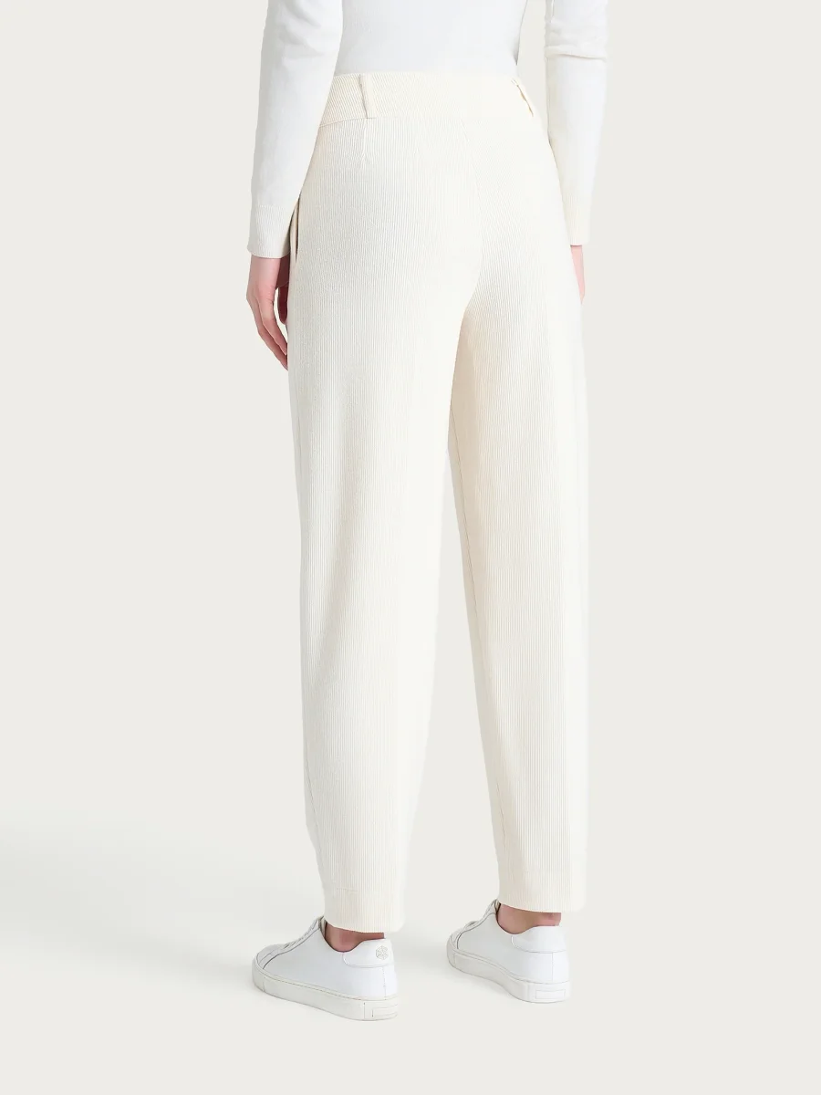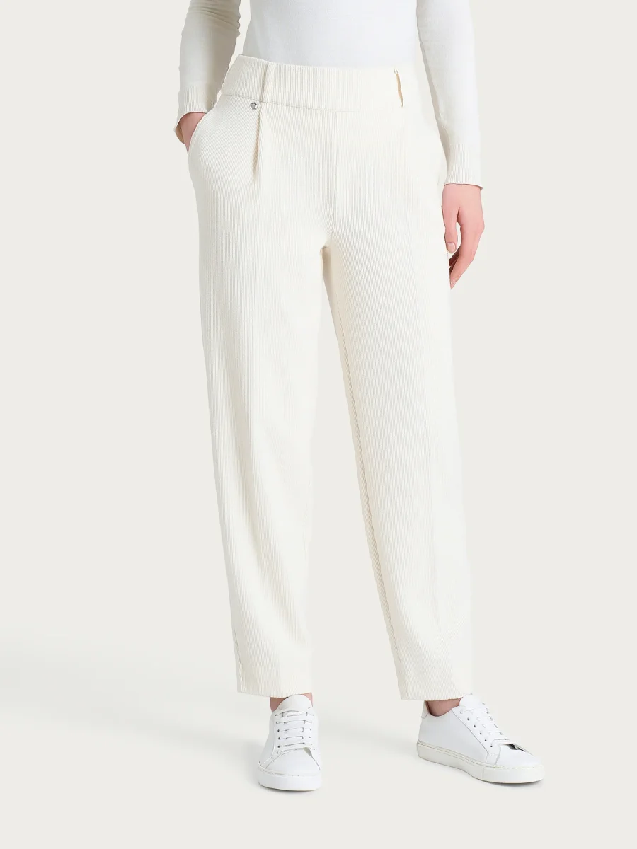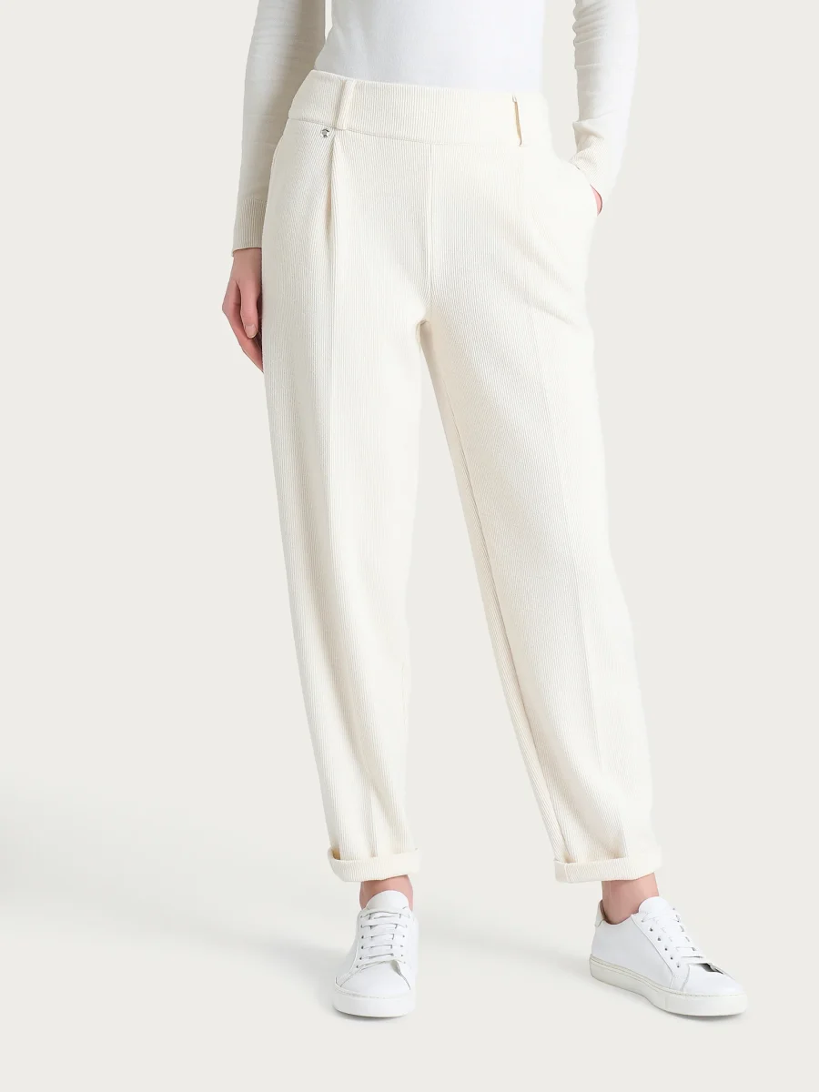 Pantalone a carota con tasche e pinces in Velvet – Avorio