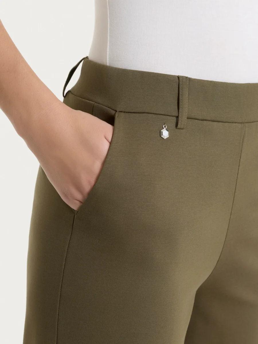 Il tessuto compact light offre comfort e traspirabilità, rendendo questo pantalone adatto a molte occasioni nonostante il calore delle giornate estive.