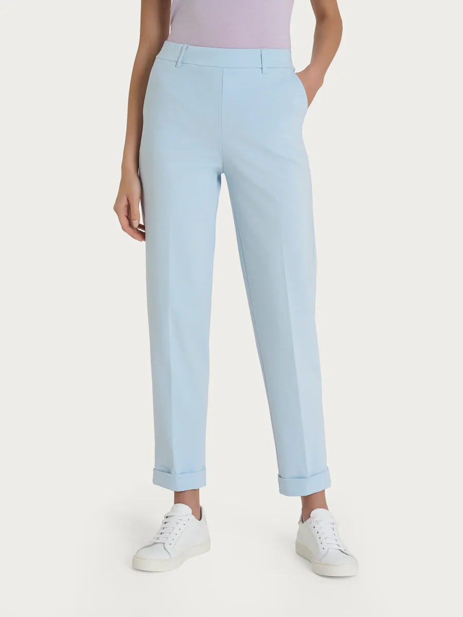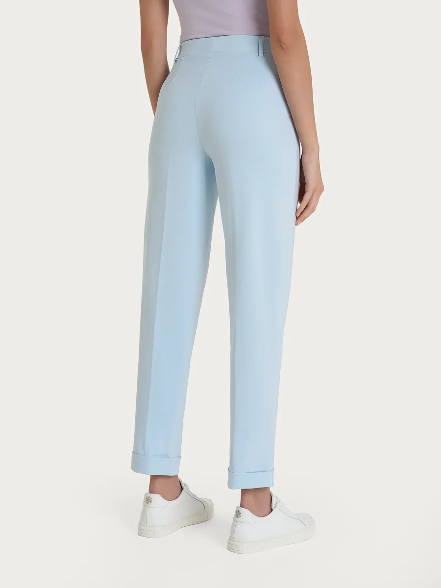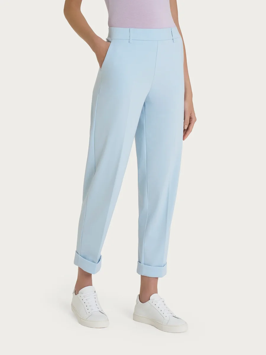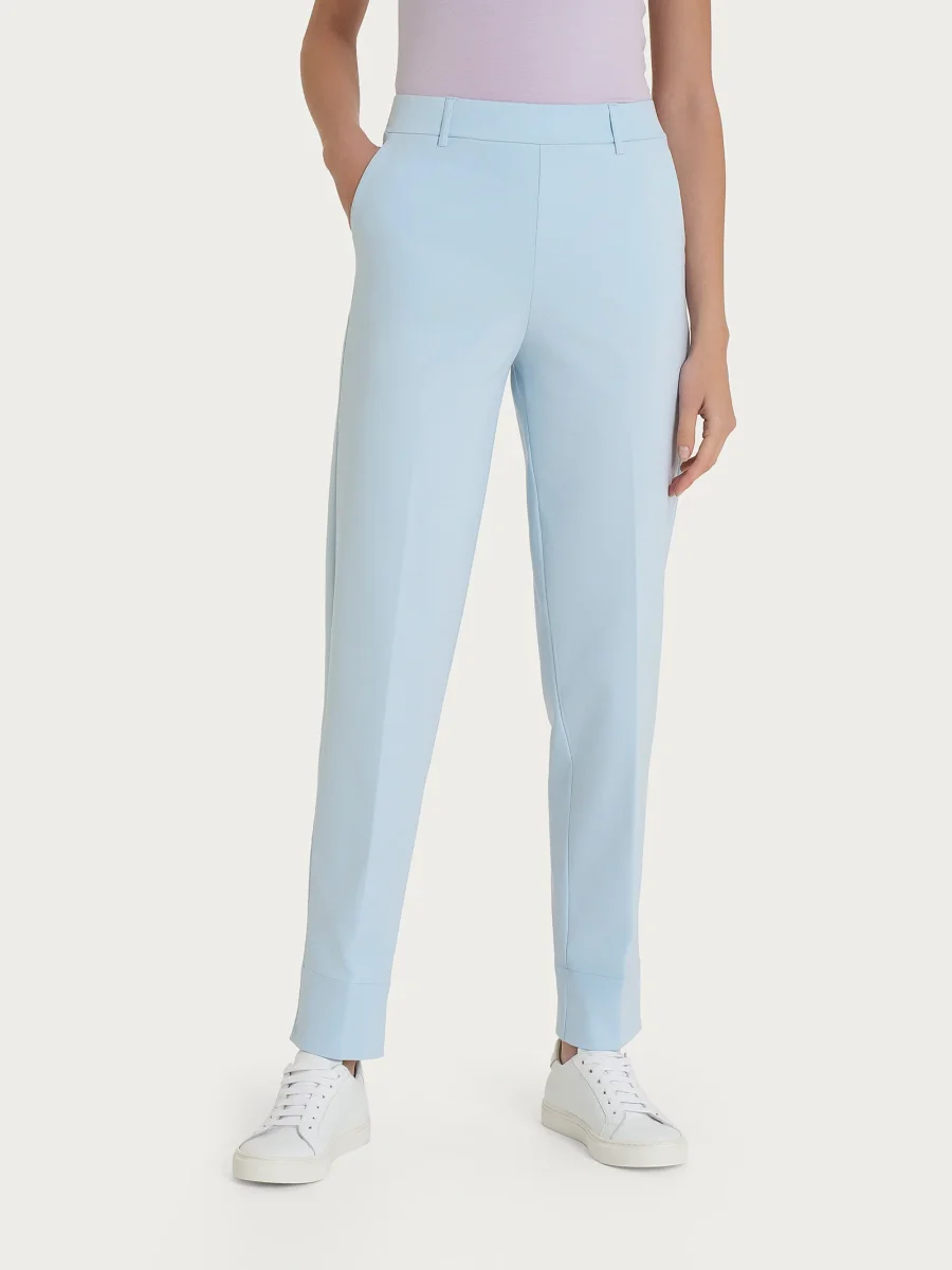 Il tessuto compact light offre comfort e traspirabilità, rendendo questo pantalone adatto a molte occasioni nonostante il calore delle giornate estive.