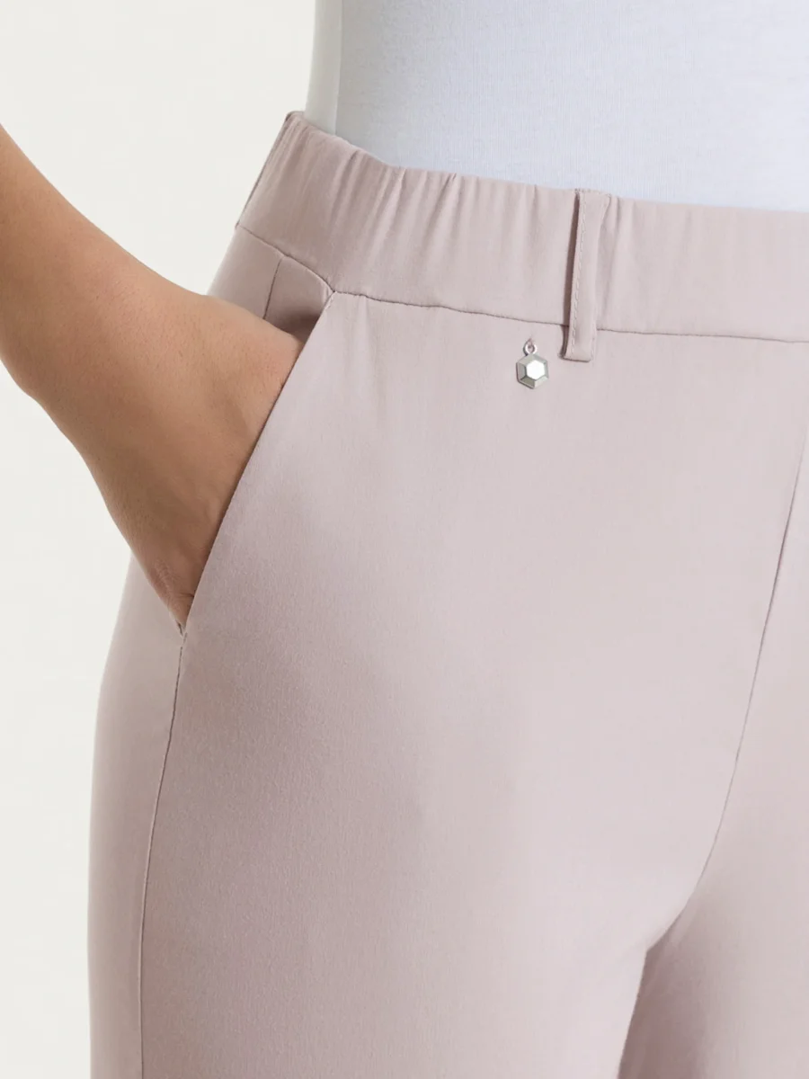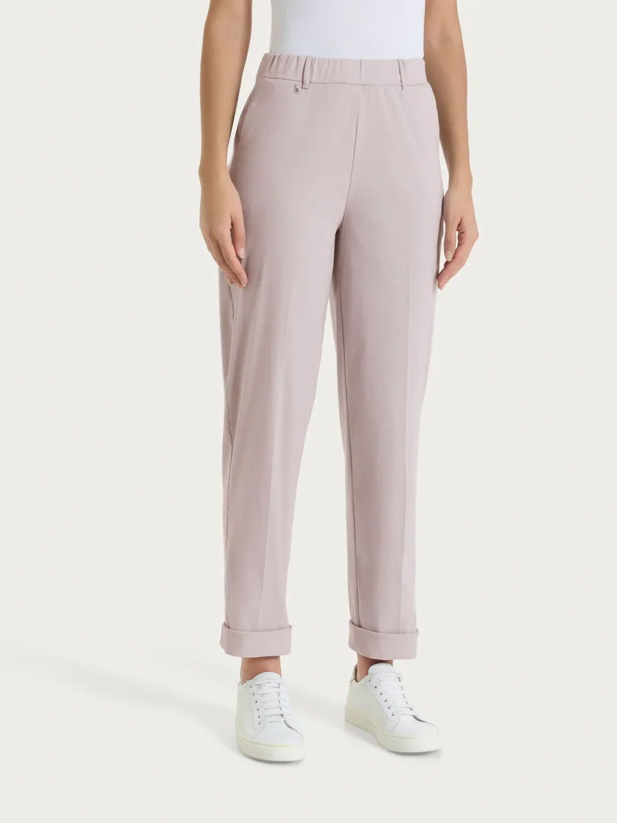 Questo modello è costruito con vita elasticizzata e pratiche tasche laterali alla francese, comodo come indossare un leggings pur mantenendo l’eleganza di un pantalone.