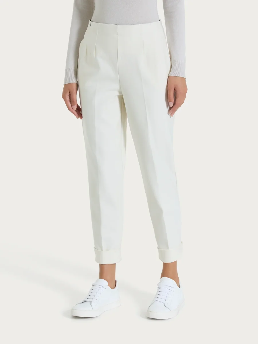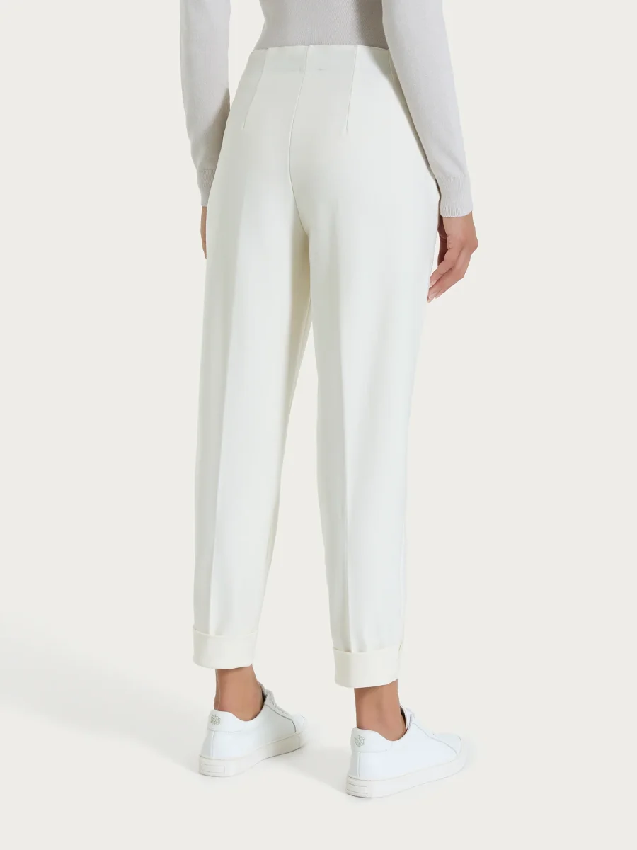 Pantalone a carota con tasche in tessuto Compact – Avorio