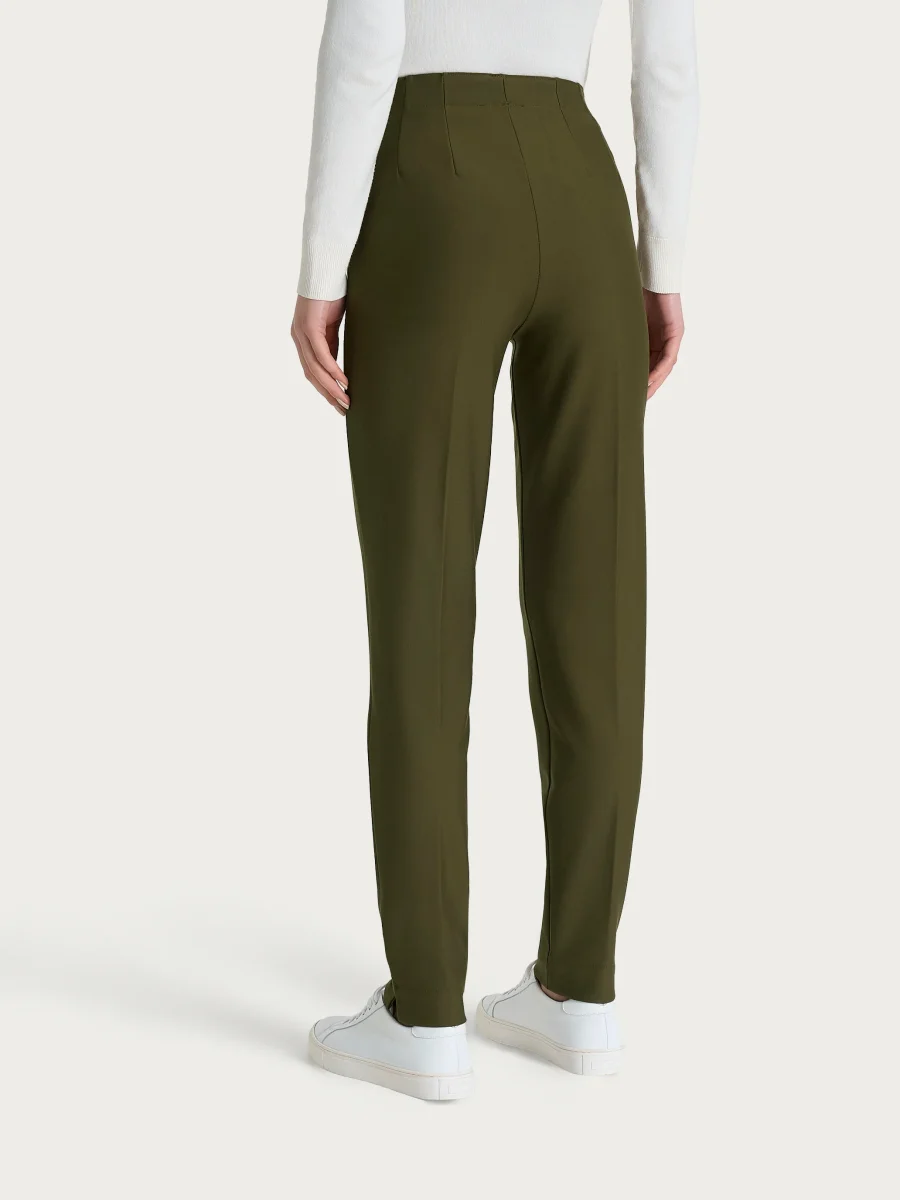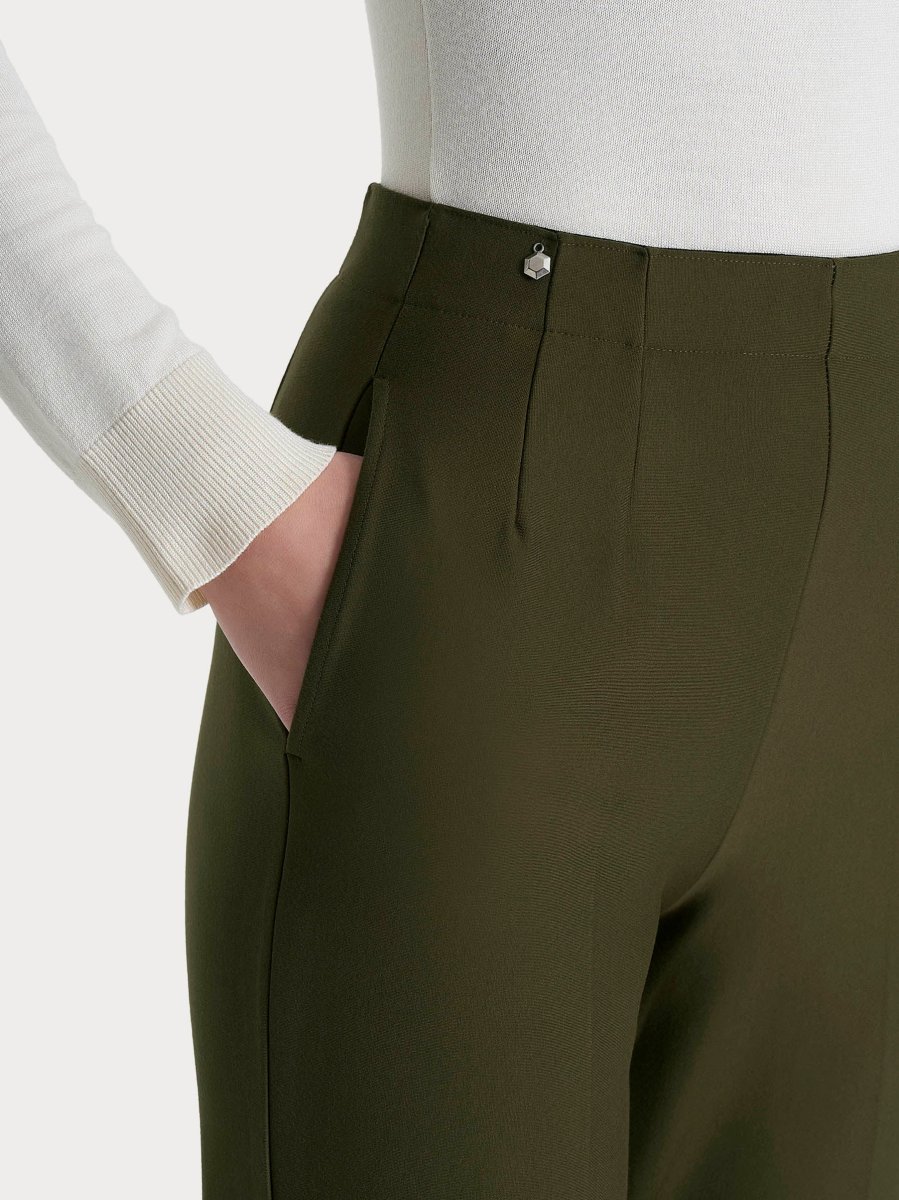 Questo modello è costruito con vita elasticizzata e pratiche tasche laterali, comodo come indossare un leggings pur mantenendo l’eleganza di un pantalone.
