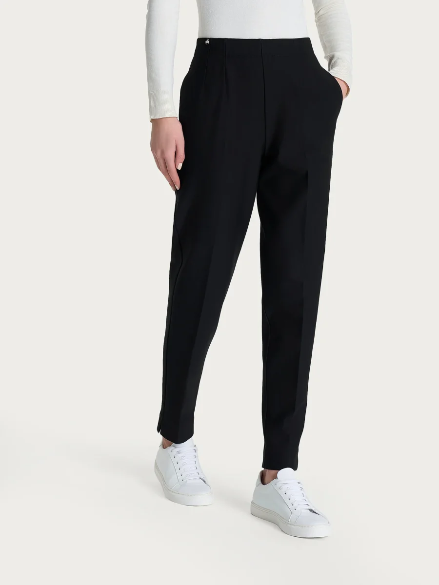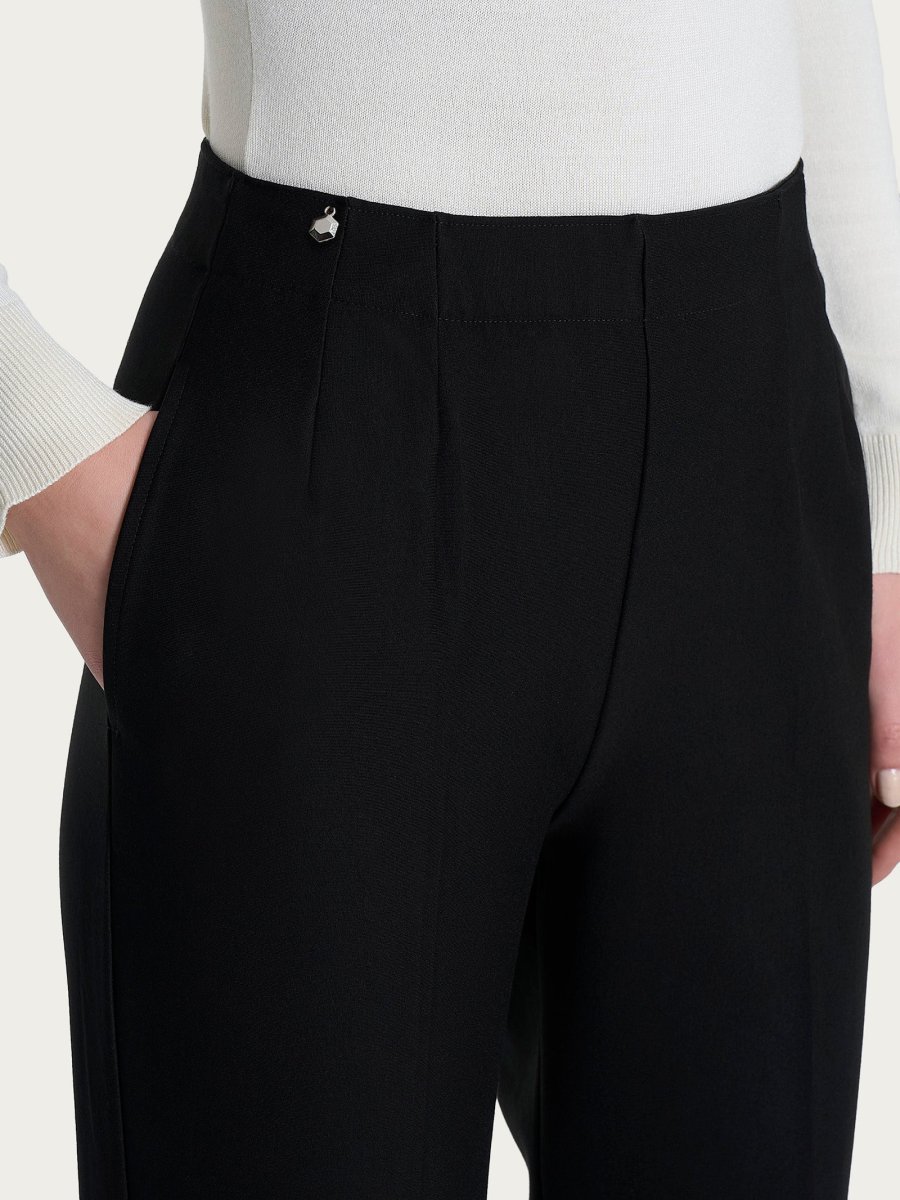 Questo modello è costruito con vita elasticizzata e pratiche tasche laterali, comodo come indossare un leggings pur mantenendo l’eleganza di un pantalone.