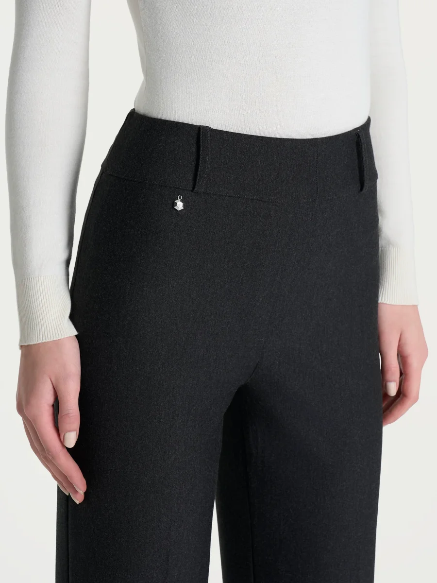 Questo modello è costruito con vita elasticizzata ma con i passanti per la cintura per permetterti di aggiungere quel tocco di stile personale in più, senza tasche, comodo come indossare un leggings pur mantenendo l’eleganza di un pantalone.