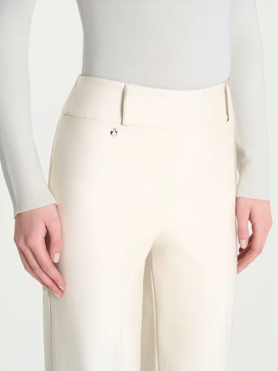 Questo modello è costruito con vita elasticizzata ma con i passanti per la cintura per permetterti di aggiungere quel tocco di stile personale in più, senza tasche, comodo come indossare un leggings pur mantenendo l’eleganza di un pantalone.
