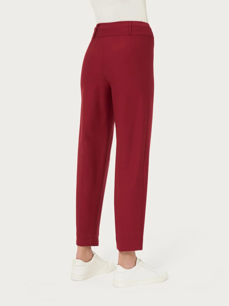 Pantalone a carota da donna con vestibilità tapered, la gamba leggermente ampia si stringe verso la caviglia, lunghezza cropped alla caviglia.