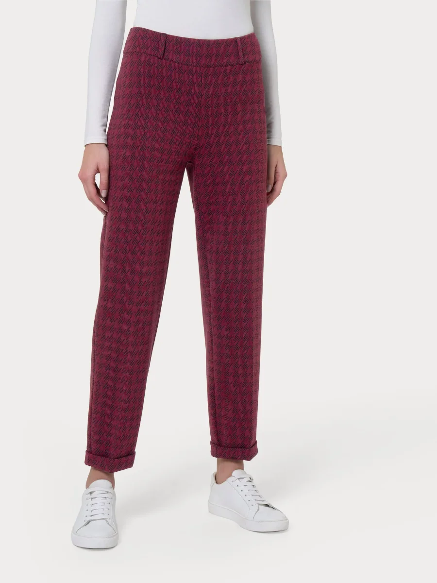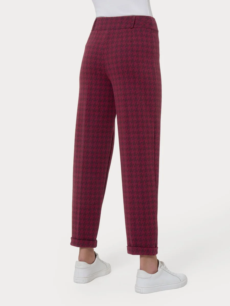 Pantalone a carota da donna con vestibilità tapered, la gamba leggermente ampia si stringe verso la caviglia.