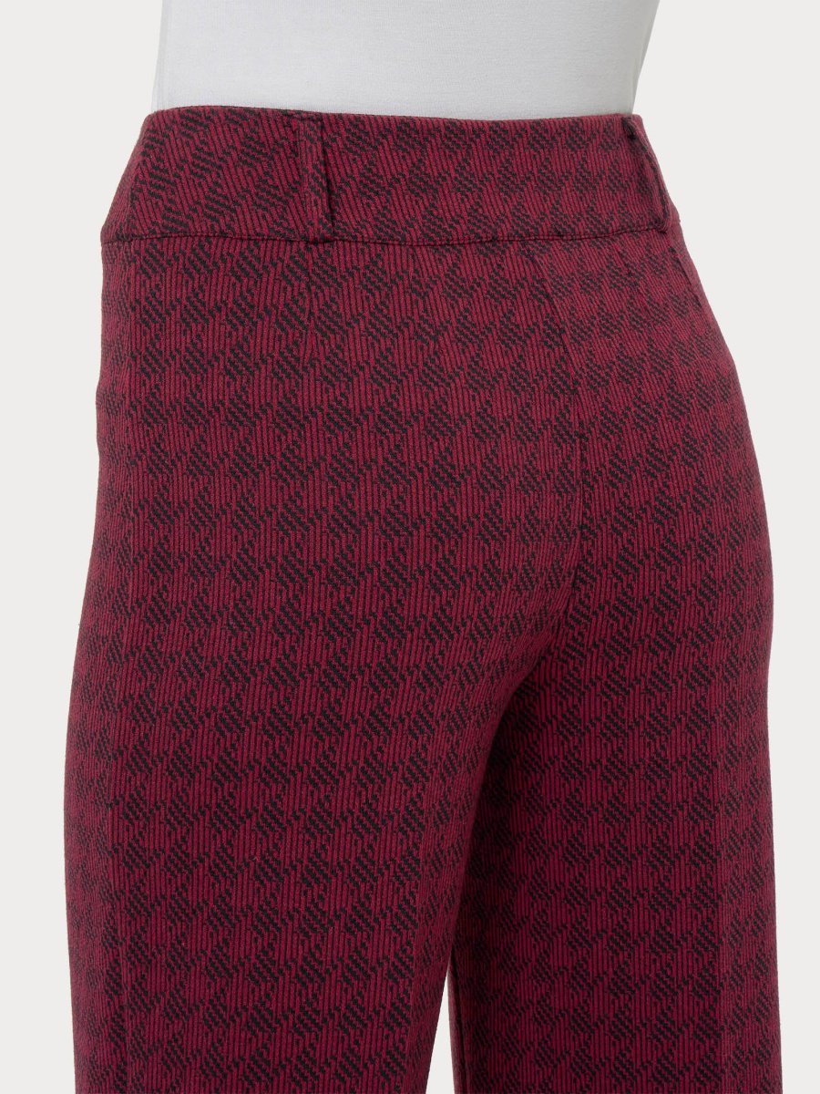 Realizzato nell’esclusivo tessuto Jacquard, un punto Milano particolarmente elasticizzato che imita per stabilità e peso un tessuto navetta pur mantenendo la caratteristica elasticità dei tessuti a maglia. Inoltre la particolare tessitura jacquard consente di realizzare raffinati disegni tinto filo.