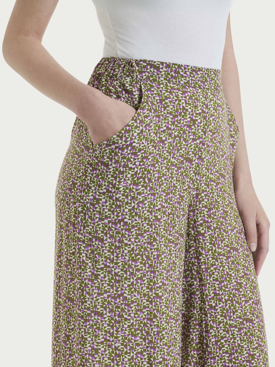 Disponibile in diversi colori vibranti e moderni, perfettamente abbinabile alle bluse con la medesima fantasia o in tinta unità in base all’occasione.