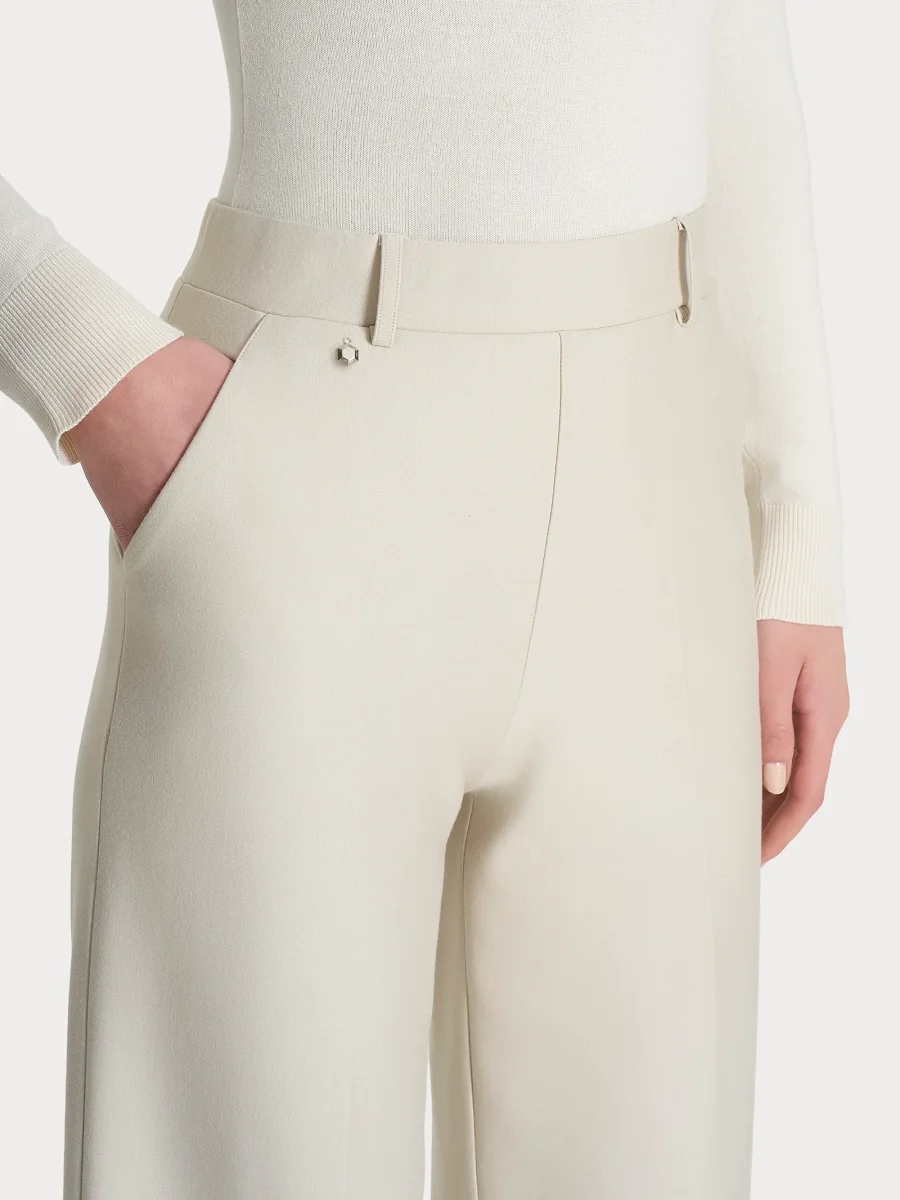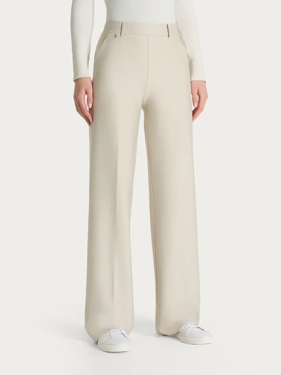 Realizzato nell’esclusivo tessuto Compact, un punto Milano incredibilmente compatto ed elasticizzato, tanto da garantire sempre una vestibilità perfetta.