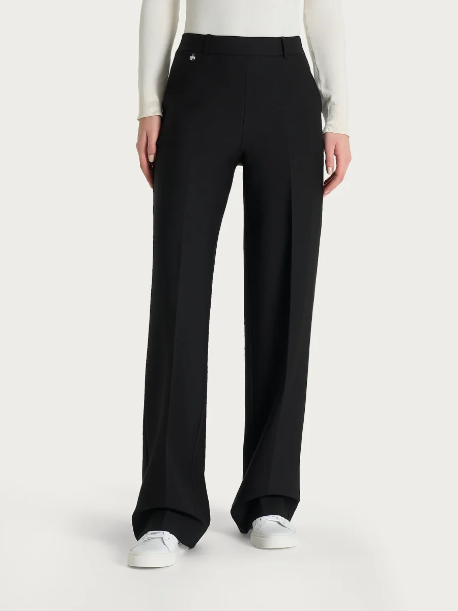 Realizzato nell’esclusivo tessuto Compact, un punto Milano incredibilmente compatto ed elasticizzato, tanto da garantire sempre una vestibilità perfetta.