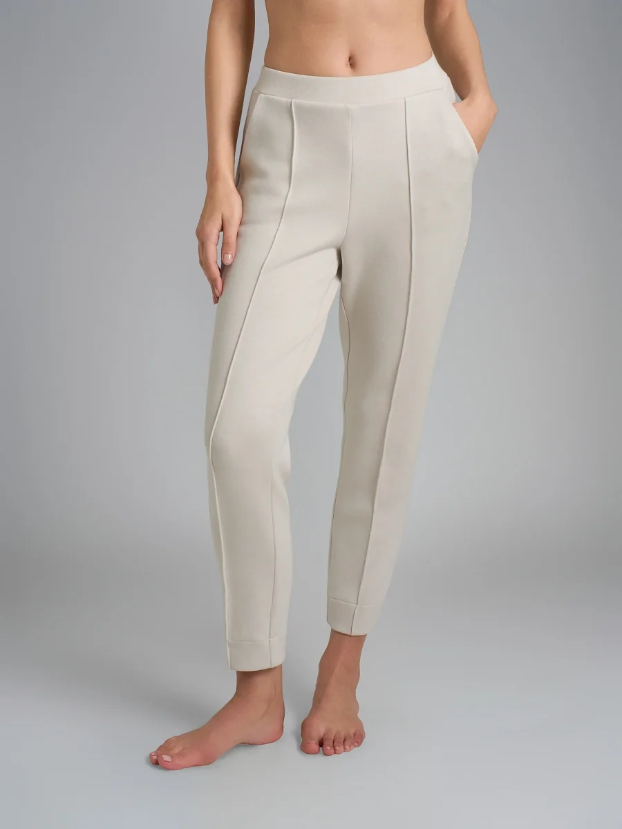 Caratterizzato da una linea dritta e asciutta, questo pantalone segue delicatamente la gamba senza aderire troppo, valorizzando la silhouette con discrezione e armonia.