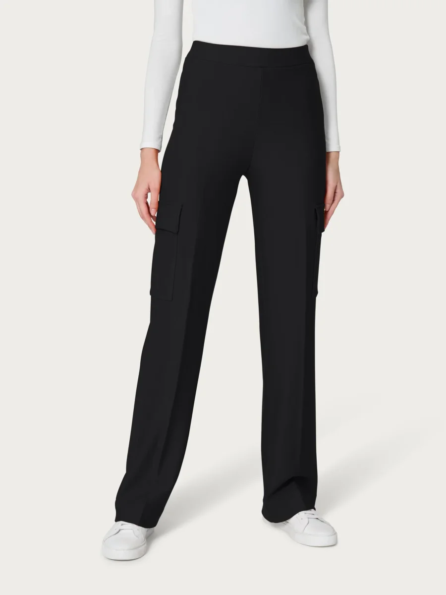 Pantalone lungo da donna con vestibilità ampia e rilassata, modello cargo.