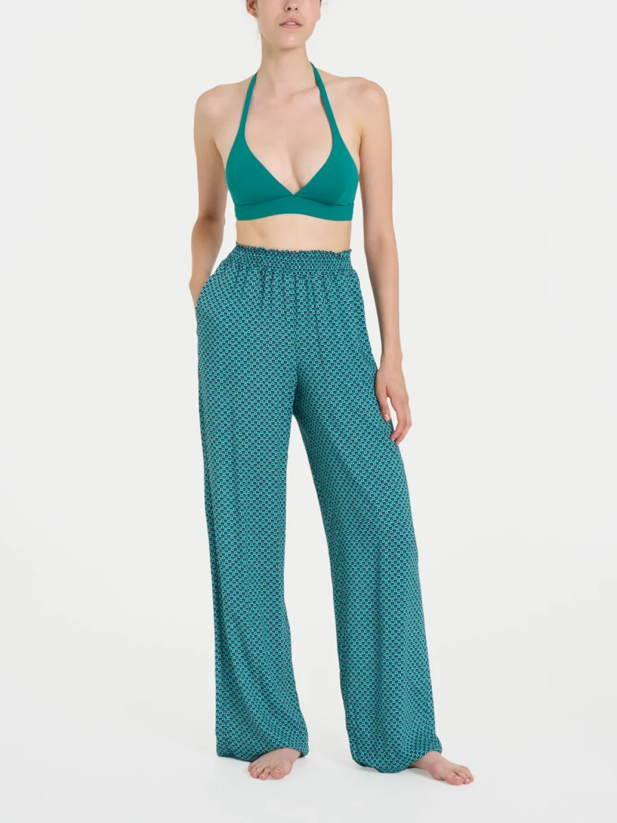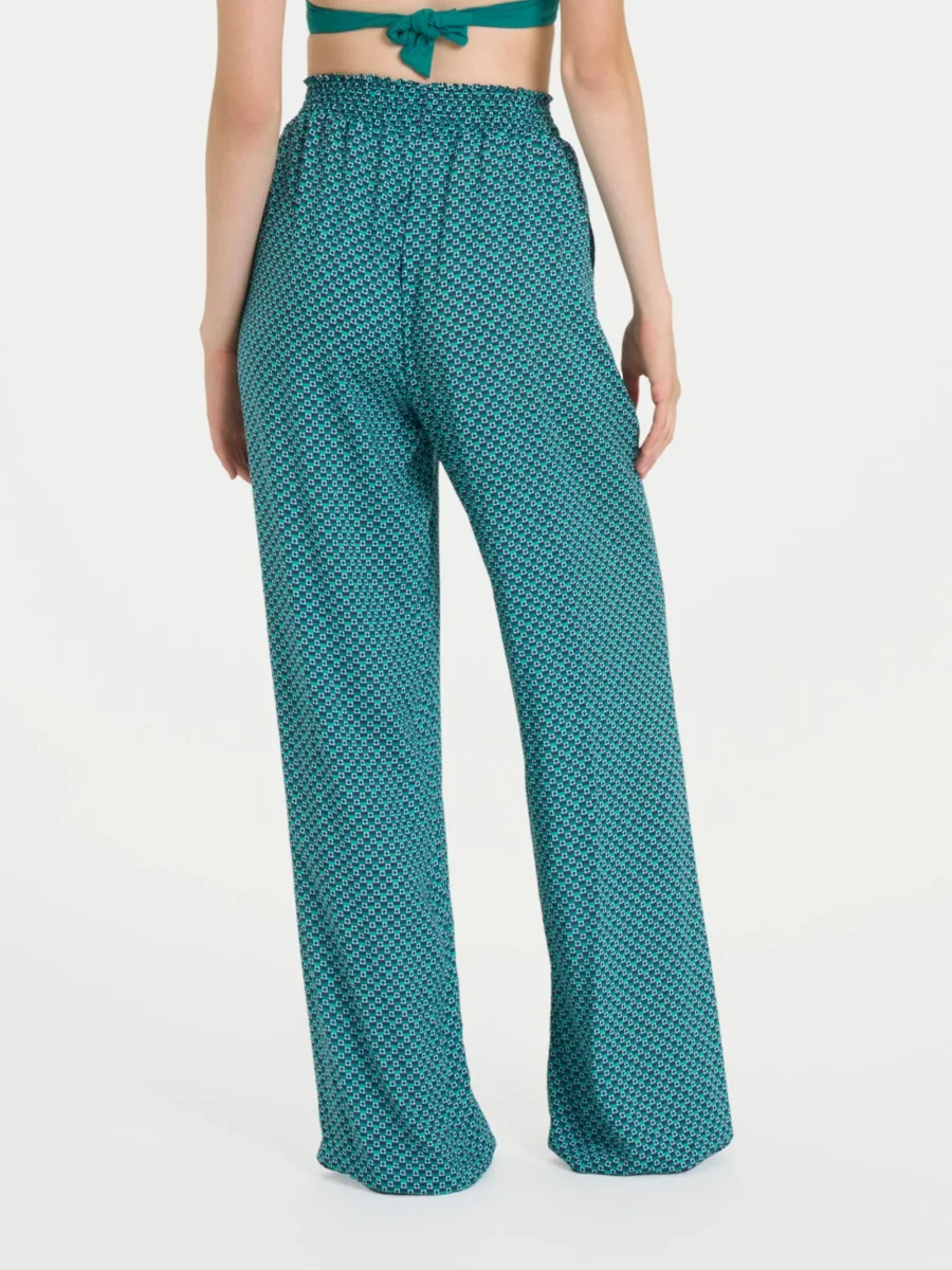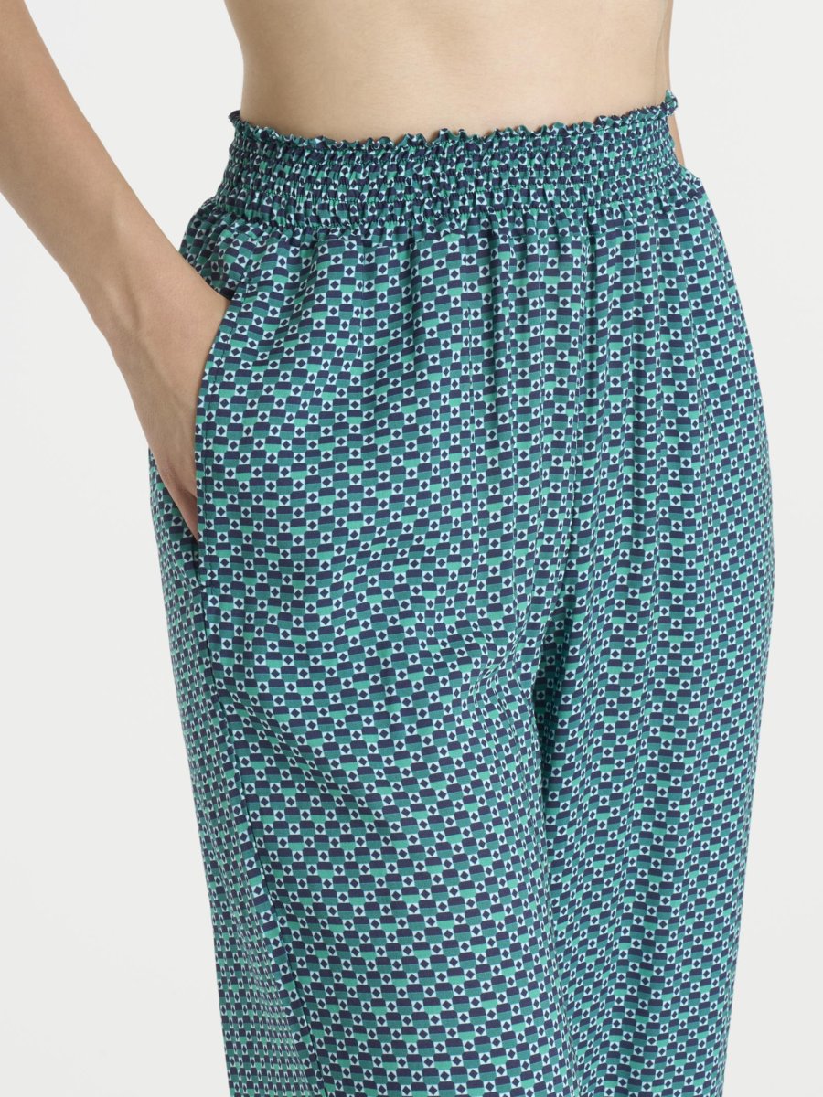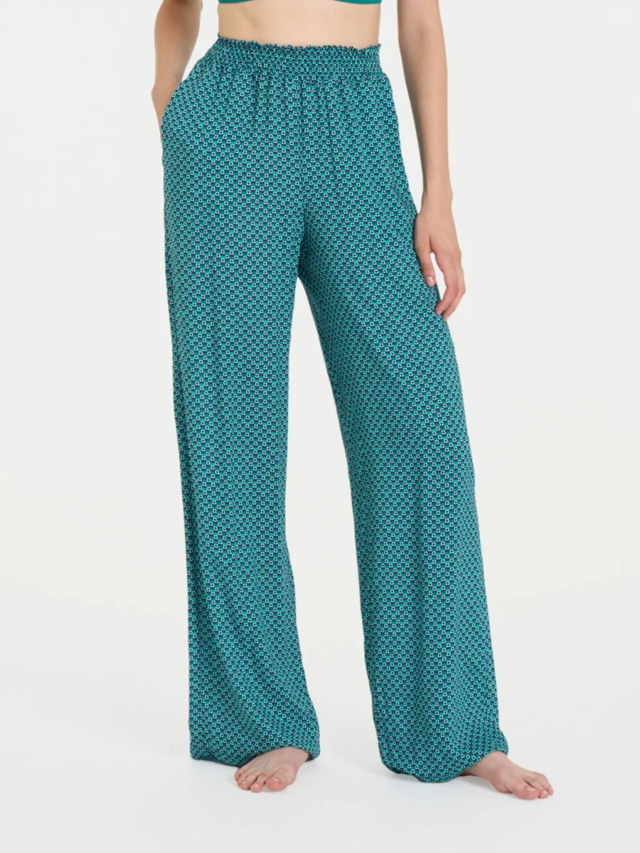 A seconda del colore, il pantalone presenta disegni geometrici e floreali diversi: cachemire, cerchi o triangoli, per un look che unisce eleganza e versatilità per affrontare la giornata con stile qualunque sia la tua esigenza e occasione d’uso.
