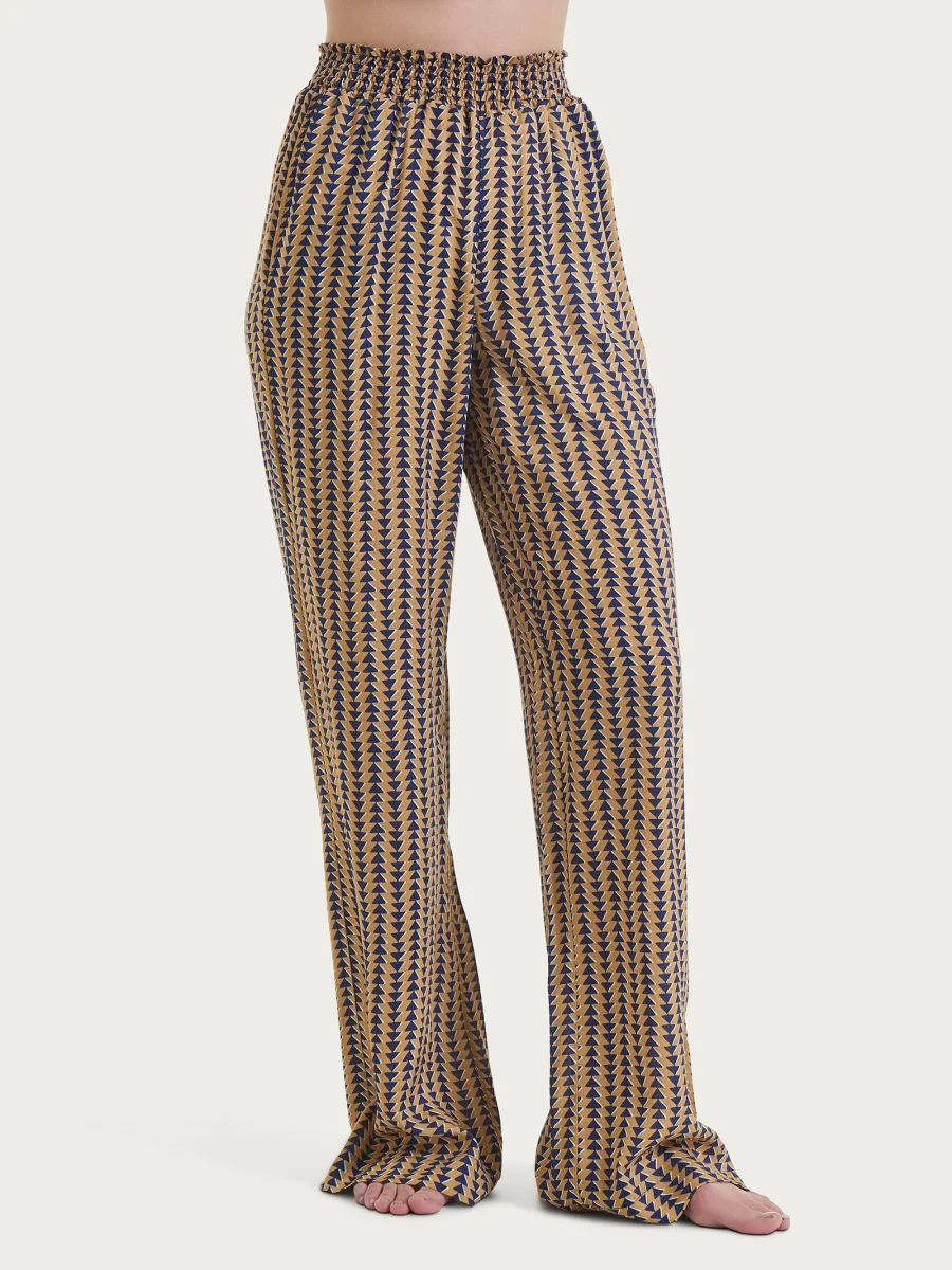 Pantalone ampio con arricciatura in fantasia in Ecoseta – Fant. Indian Tan