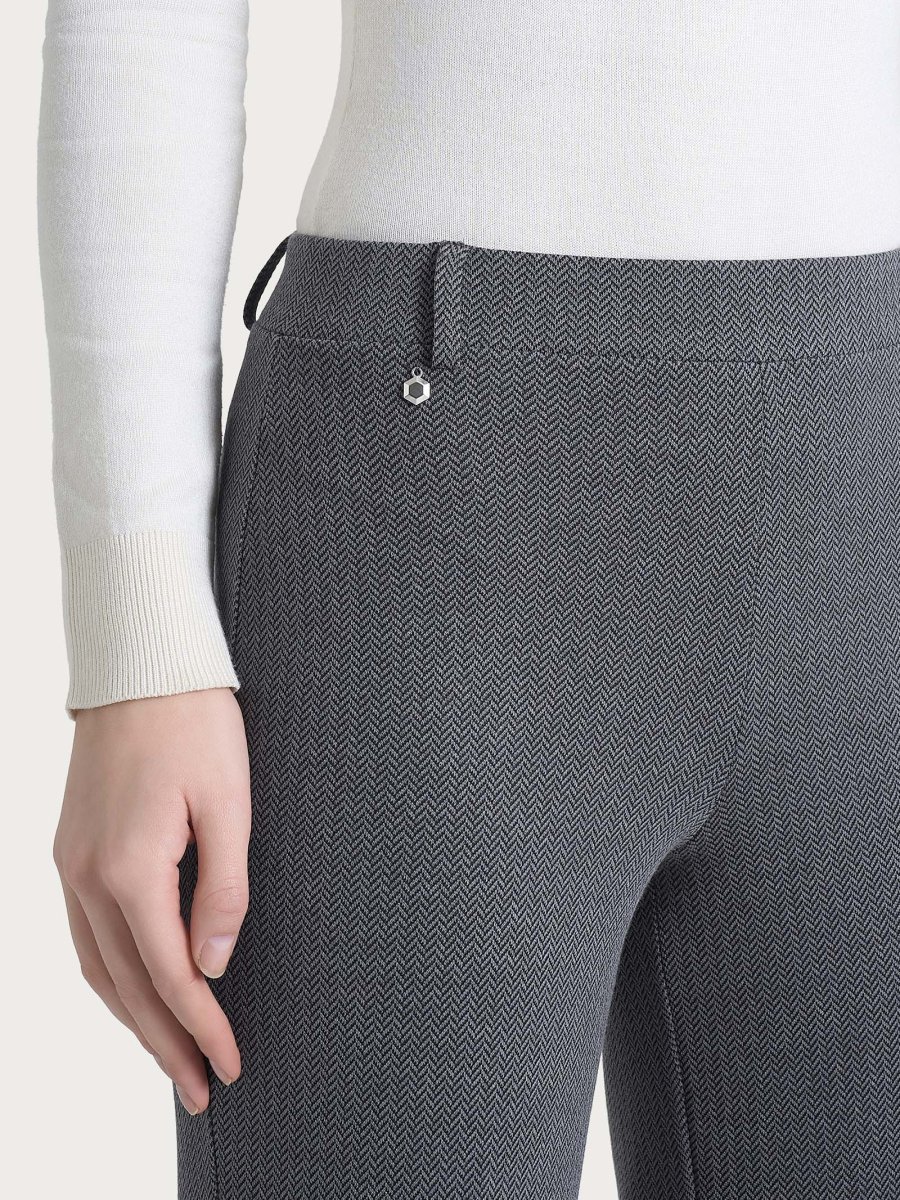 Pantalone ampio con fantasia a spina di pesce in Eco Jacquard – Fant.Ardesia Mel.