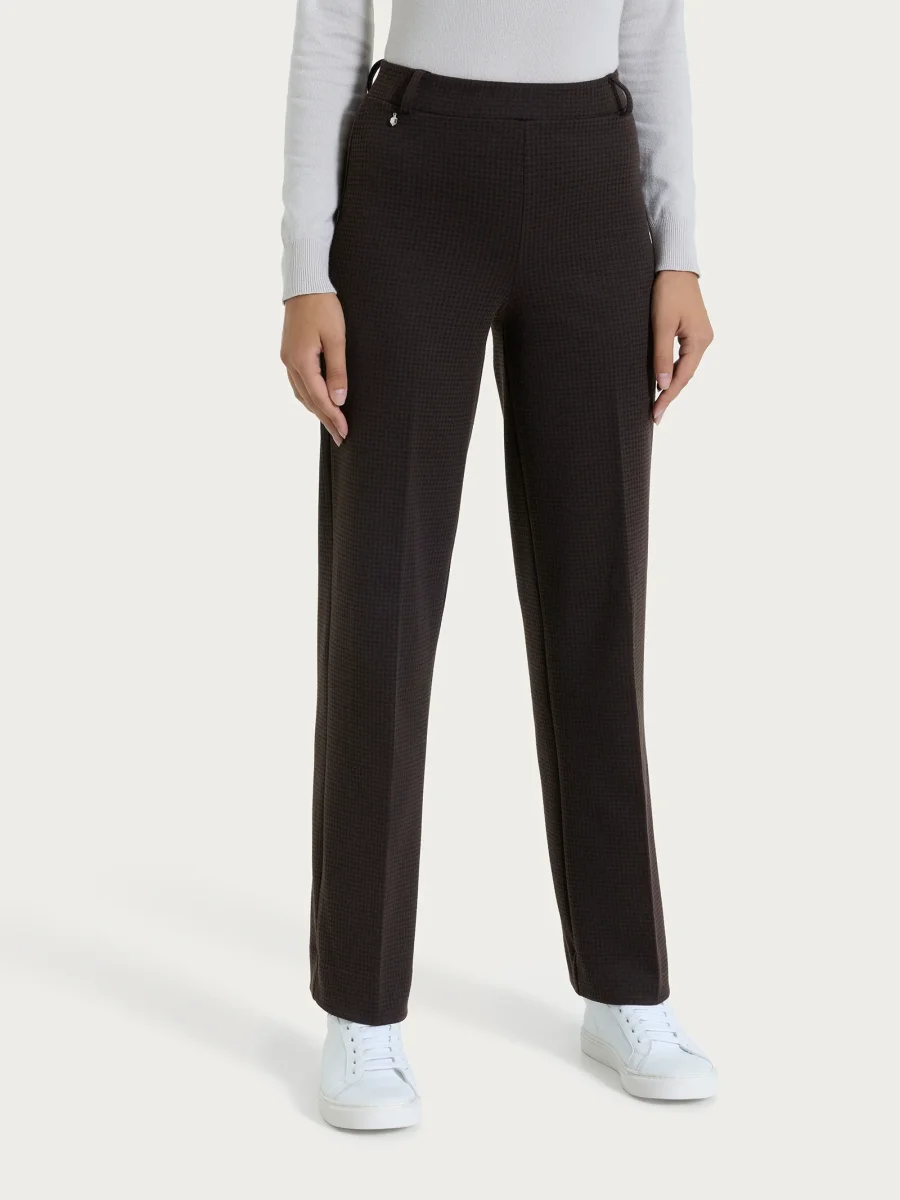 Pantalone ampio con tasche e micro check in Eco Jacquard – Fant. Chocolate Torte