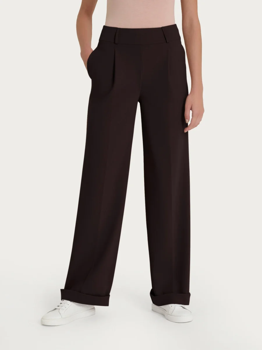 Pantalone ampio con tasche e pinces in Compact Light – Chocolate Torte