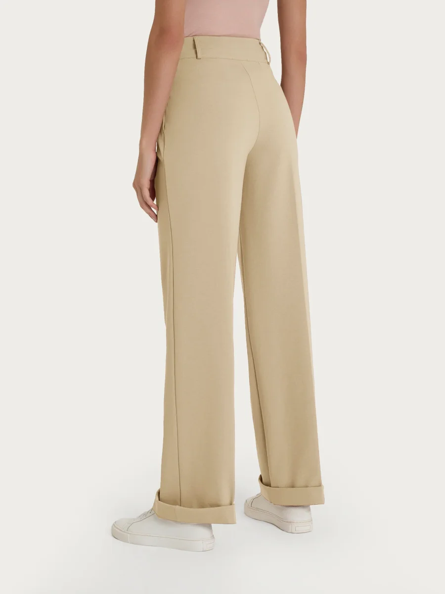 È un capo tinta unita elegante e comodo progettato per garantire una vestibilità facile e senza complicazioni. Lo stile wide leg offre una gamba ampia e fluida, garantendo comfort e libertà di movimento. Nonostante la semplicità del design è il capo perfetto come base per ogni abbinamento sia che si voglia creare un look formale o casual.