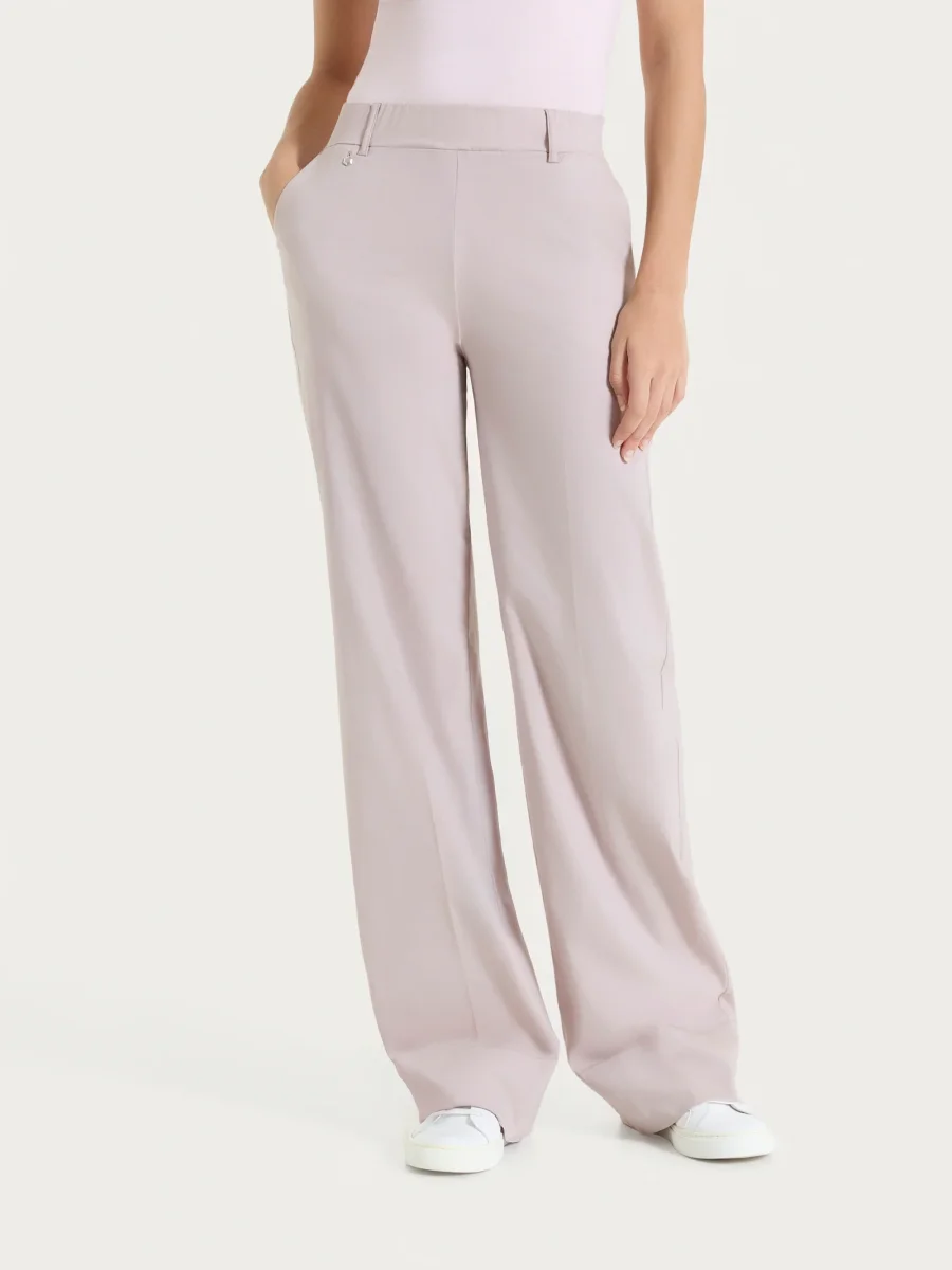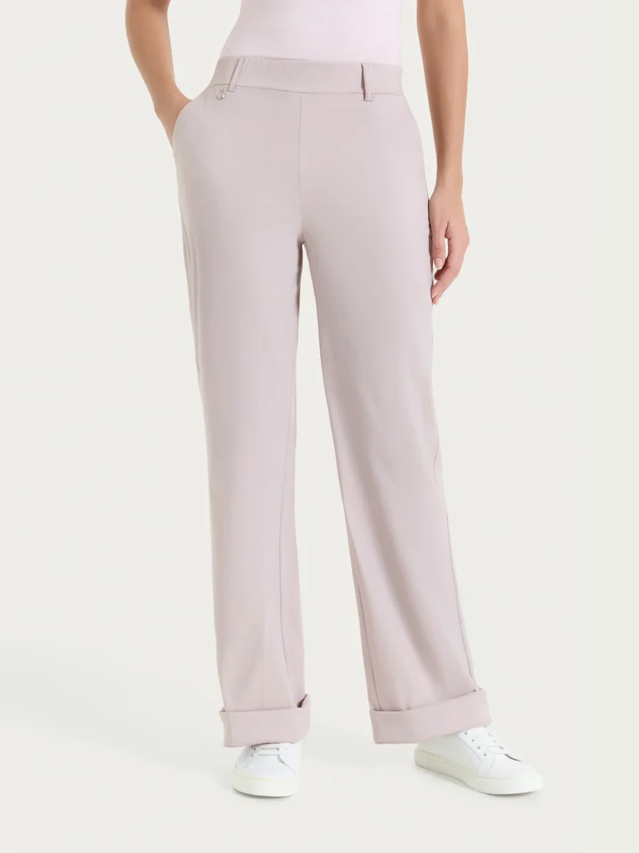 Questo modello è costruito con vita elasticizzata e tasche laterali alla francese, comodo come indossare un leggings pur mantenendo l’eleganza di un pantalone.