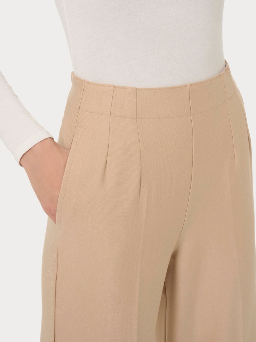 Questo modello è costruito con vita elasticizzata senza passanti, ma con delicate pinces sia sul davanti che sul retro per una maggiore eleganza. Con pratiche tasche laterali è comodo come indossare un leggings pur mantenendo l’eleganza di un pantalone.