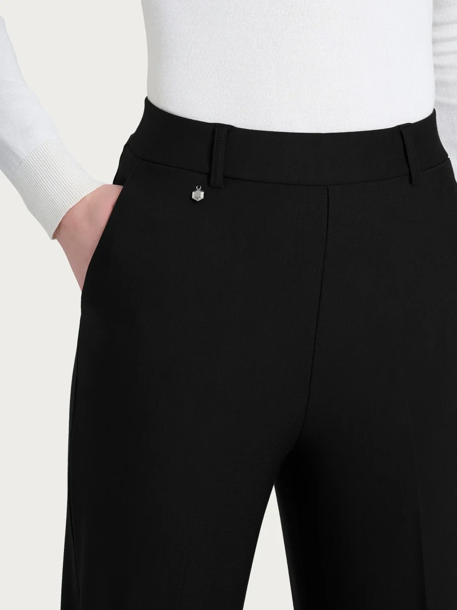Realizzato nell’esclusivo tessuto Compact, un punto Milano incredibilmente compatto ed elasticizzato, tanto da garantire sempre una vestibilità perfetta.