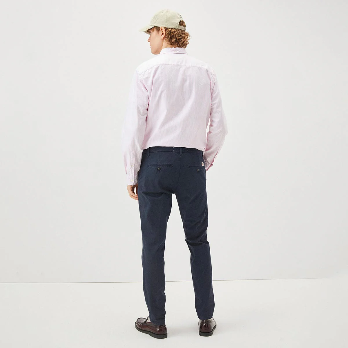 Pantalone in gabardina tinta unita. Vita media con passanti. Due tasche all’americana sul fronte e due tasche a filetto sul retro con bottone logato. Chiusura con bottone logato e zip. Label Roy Roger’s applicata sul retro. Slim fit.
