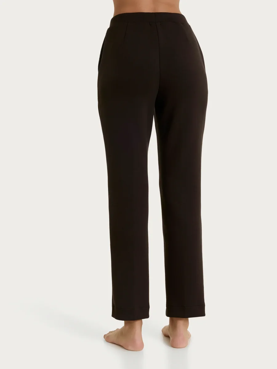 La gamba dritta, uniforme dalla coscia alla caviglia, scende in modo fluido lungo la silhouette, offrendo un effetto armonioso che accompagna con naturalezza il movimento, rendendolo adatto a ogni fisicità.
