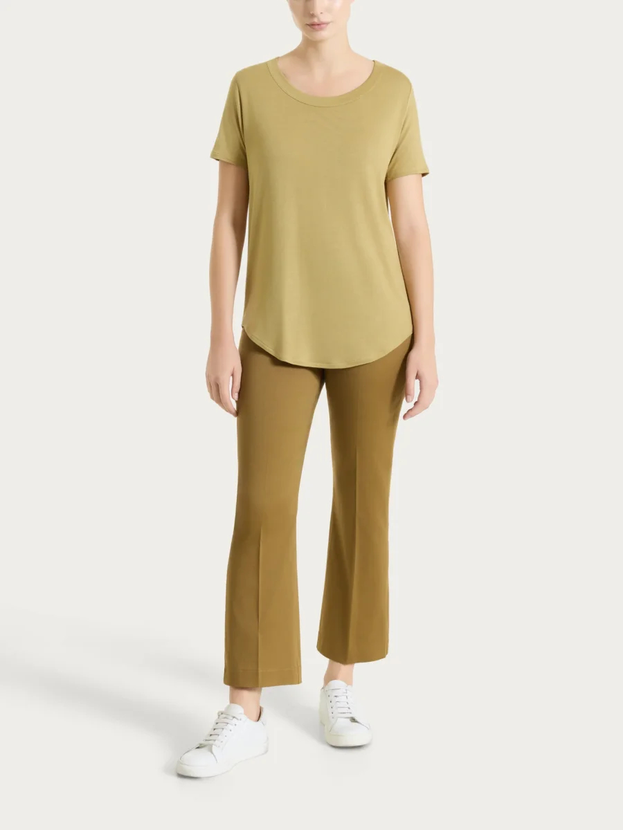 Pantalone cropped da donna con gamba leggermente scampanata nel più tradizionale stile anni ’70 e sempre attuale.