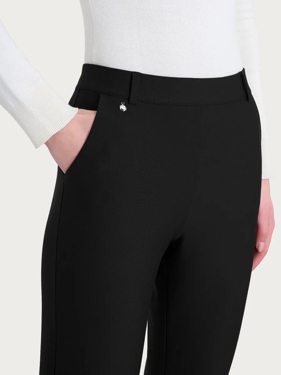 La vita elasticizzata segue delicatamente le forme, garantendo una vestibilità impeccabile. Le tasche alla francese aggiungono un tocco di funzionalità senza sacrificare l’eleganza, rendendo il pantalone pratico per affrontare impegni quotidiani con comodità.