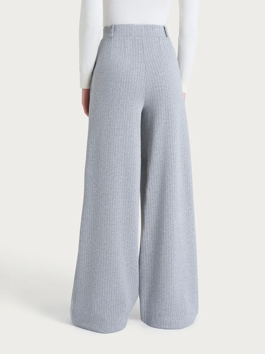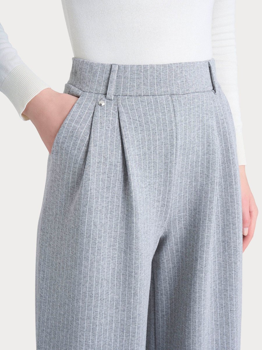 Pantalone gessato a palazzo con tasche e pinces in Eco Jacquard – Fant.Grigio Mel.