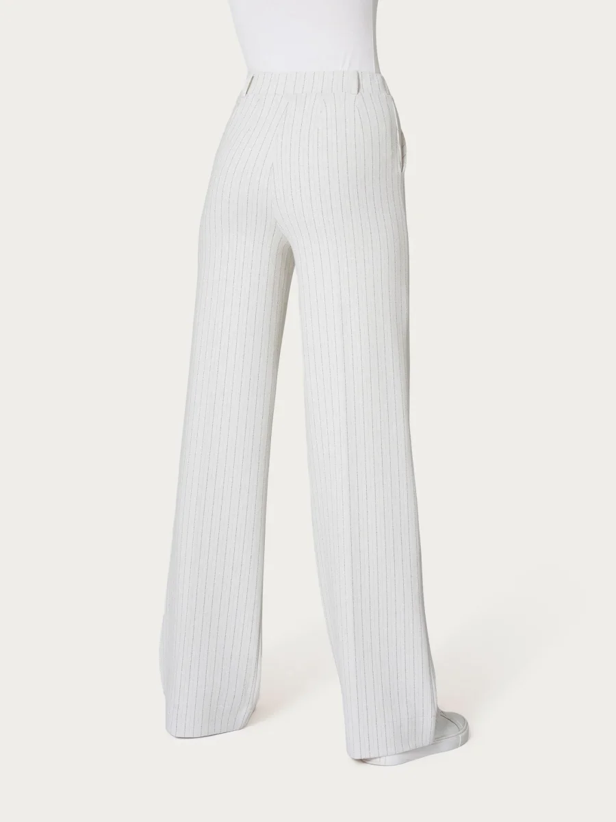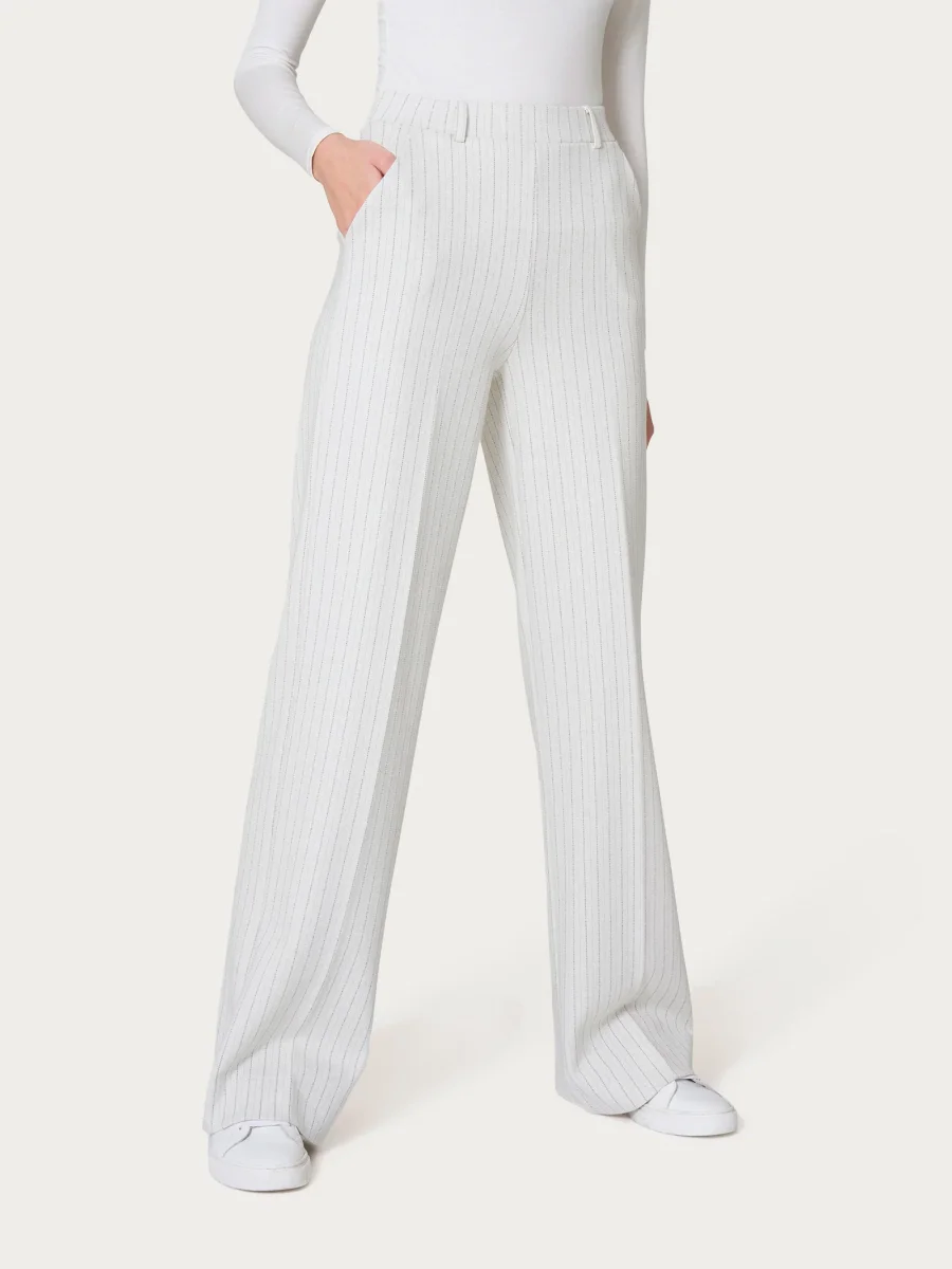 Pantalone gessato da donna con vestibilità ampia wide leg.
