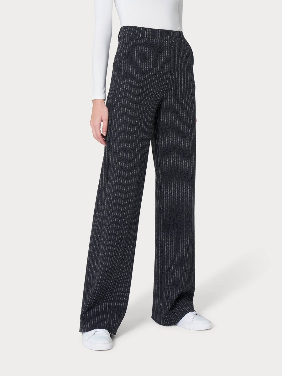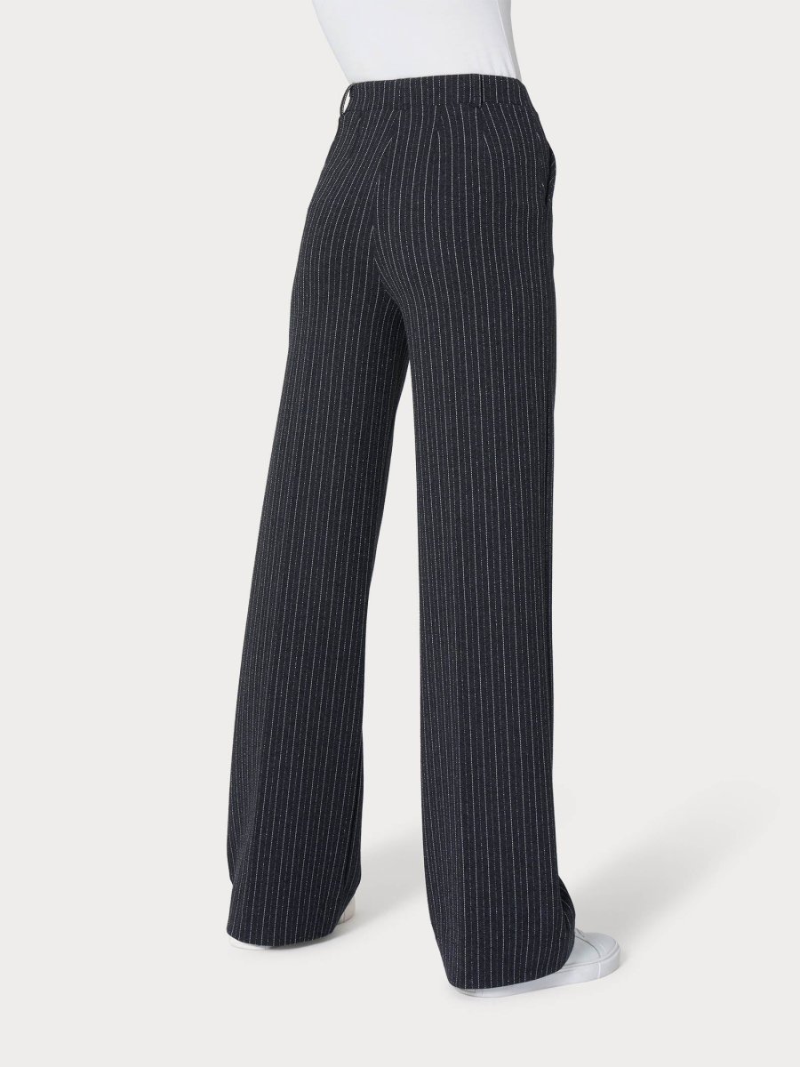 Pantalone gessato da donna con vestibilità ampia wide leg.