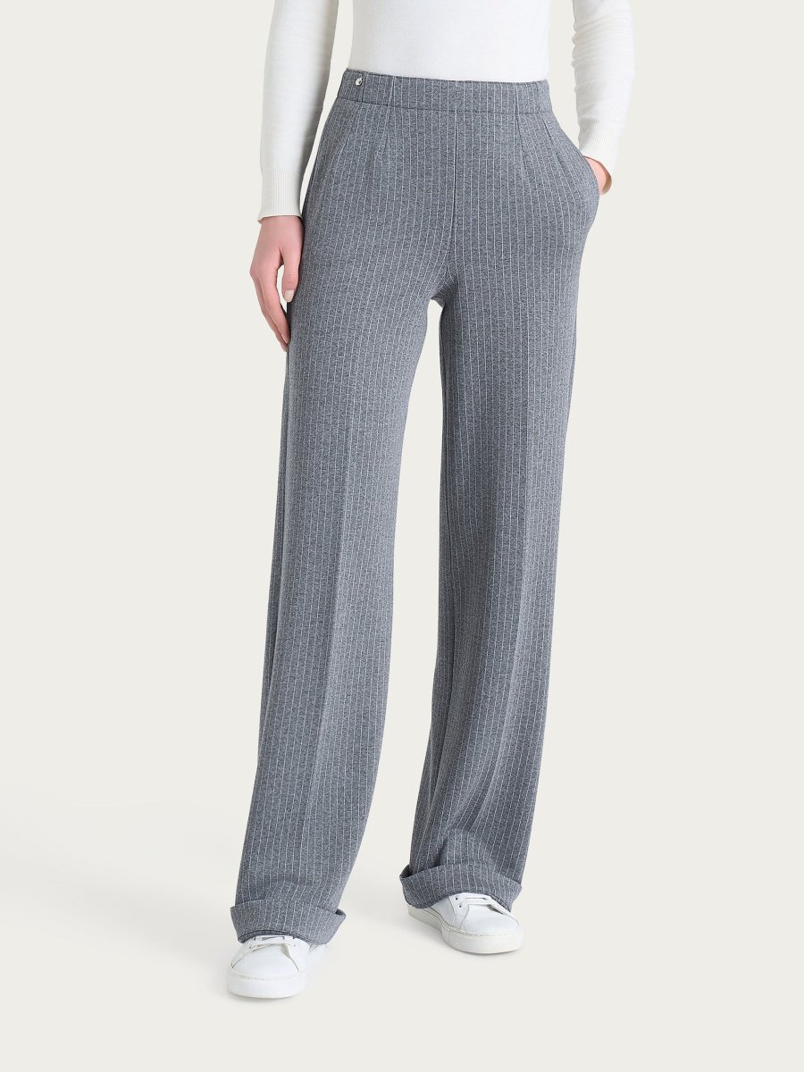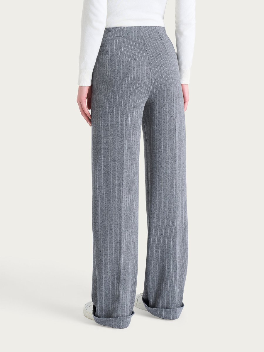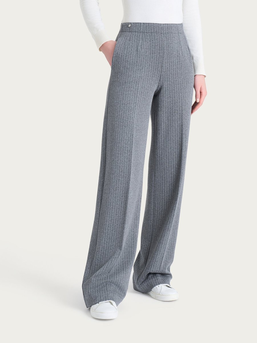 Pantalone gessato ampio con tasche in Eco Jacquard – Fant.Ardesia Mel.