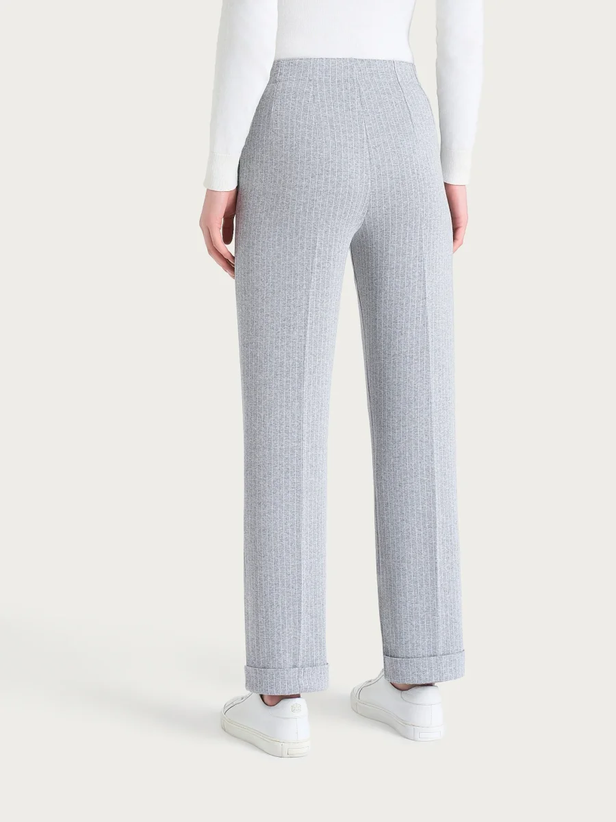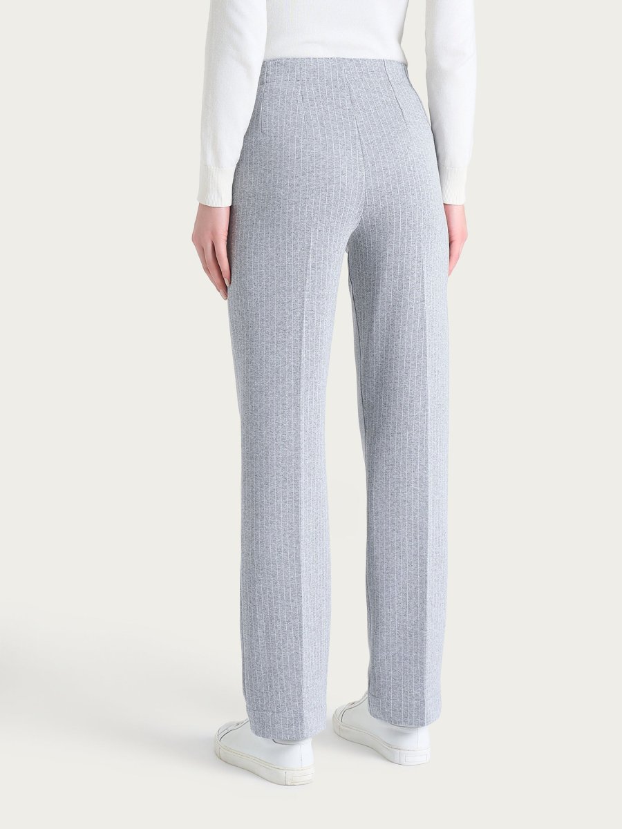 Pantalone gessato dritto con tasche in Eco Jacquard – Fant.Grigio Mel.