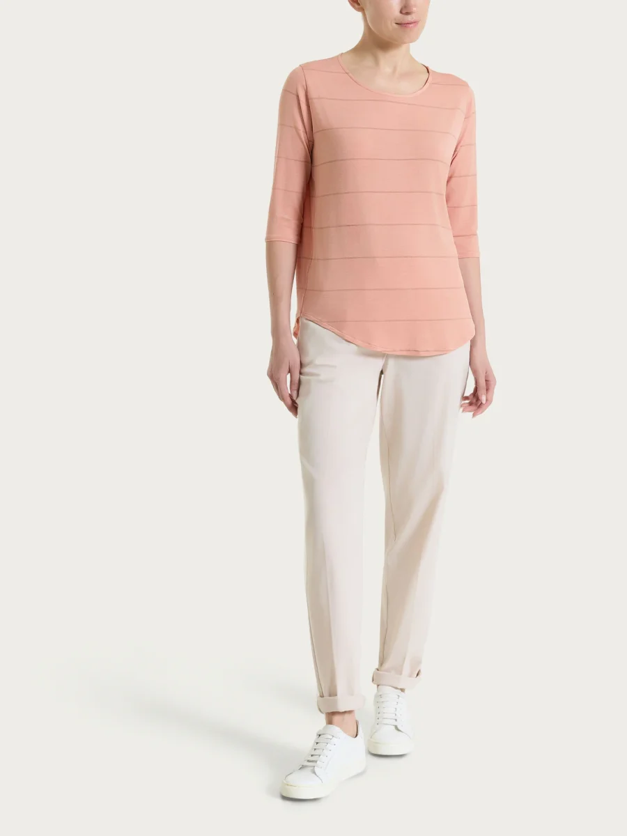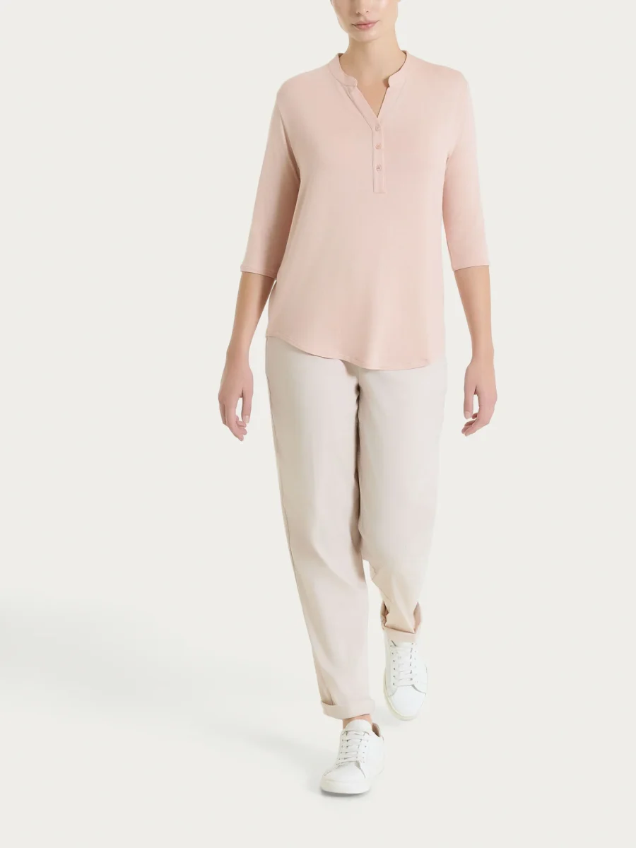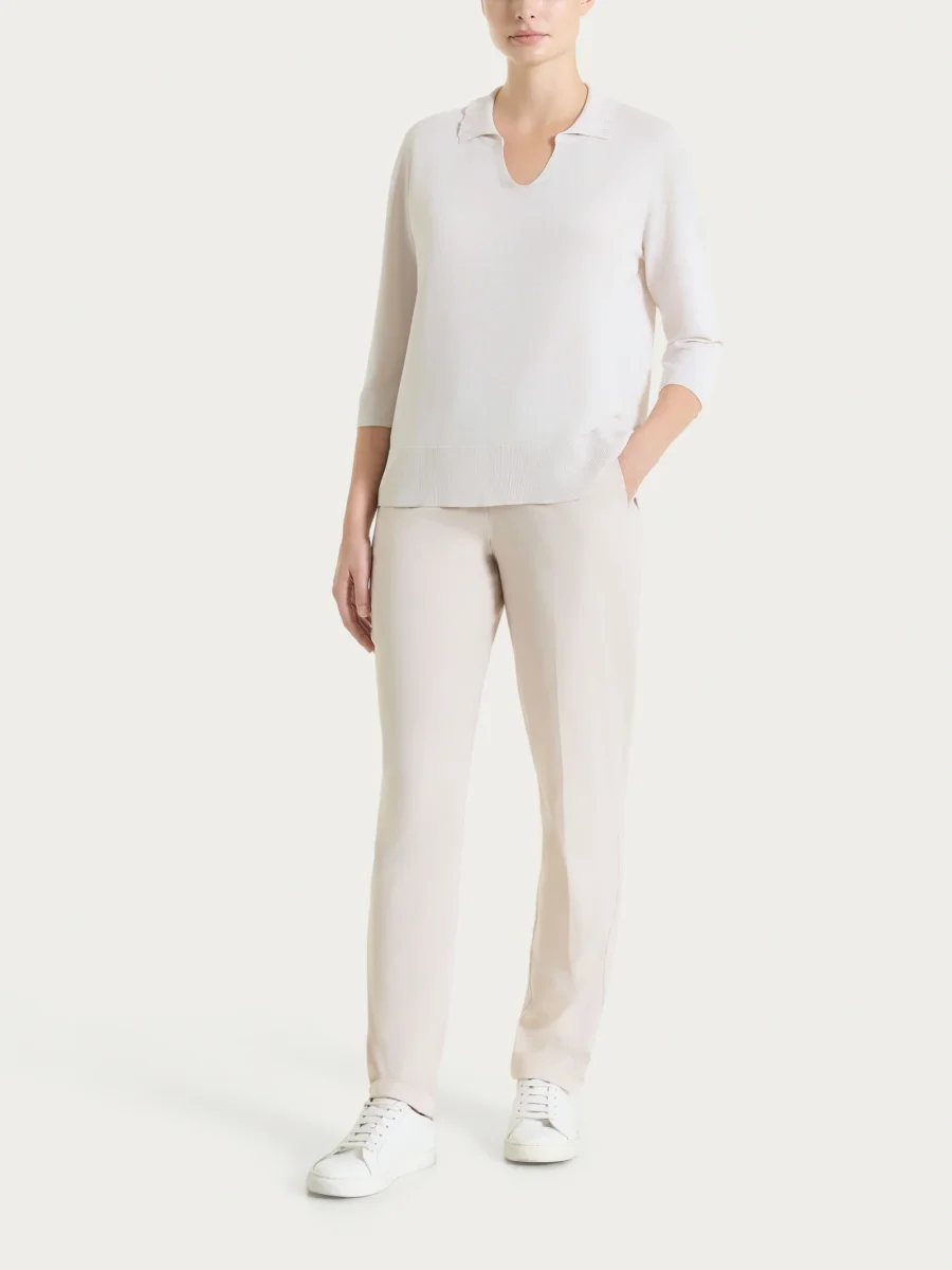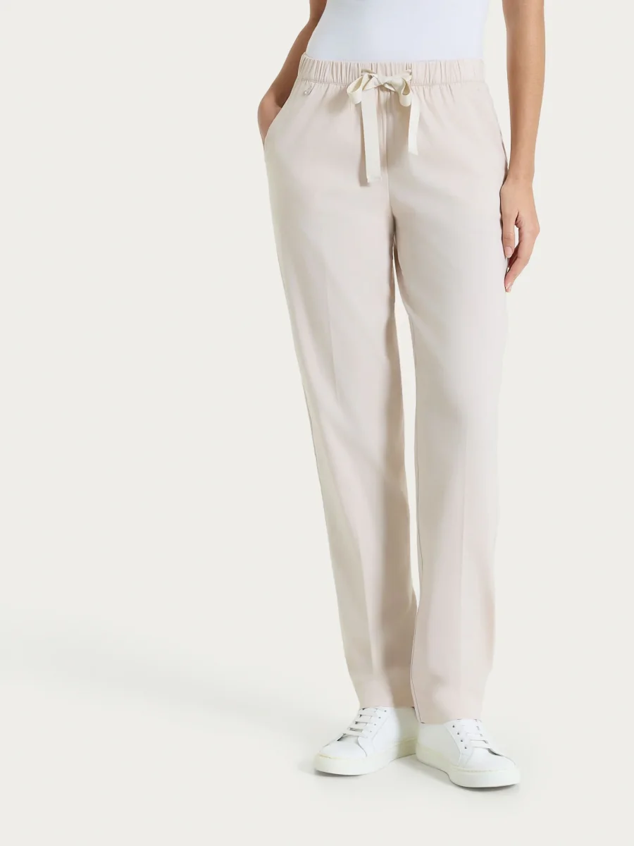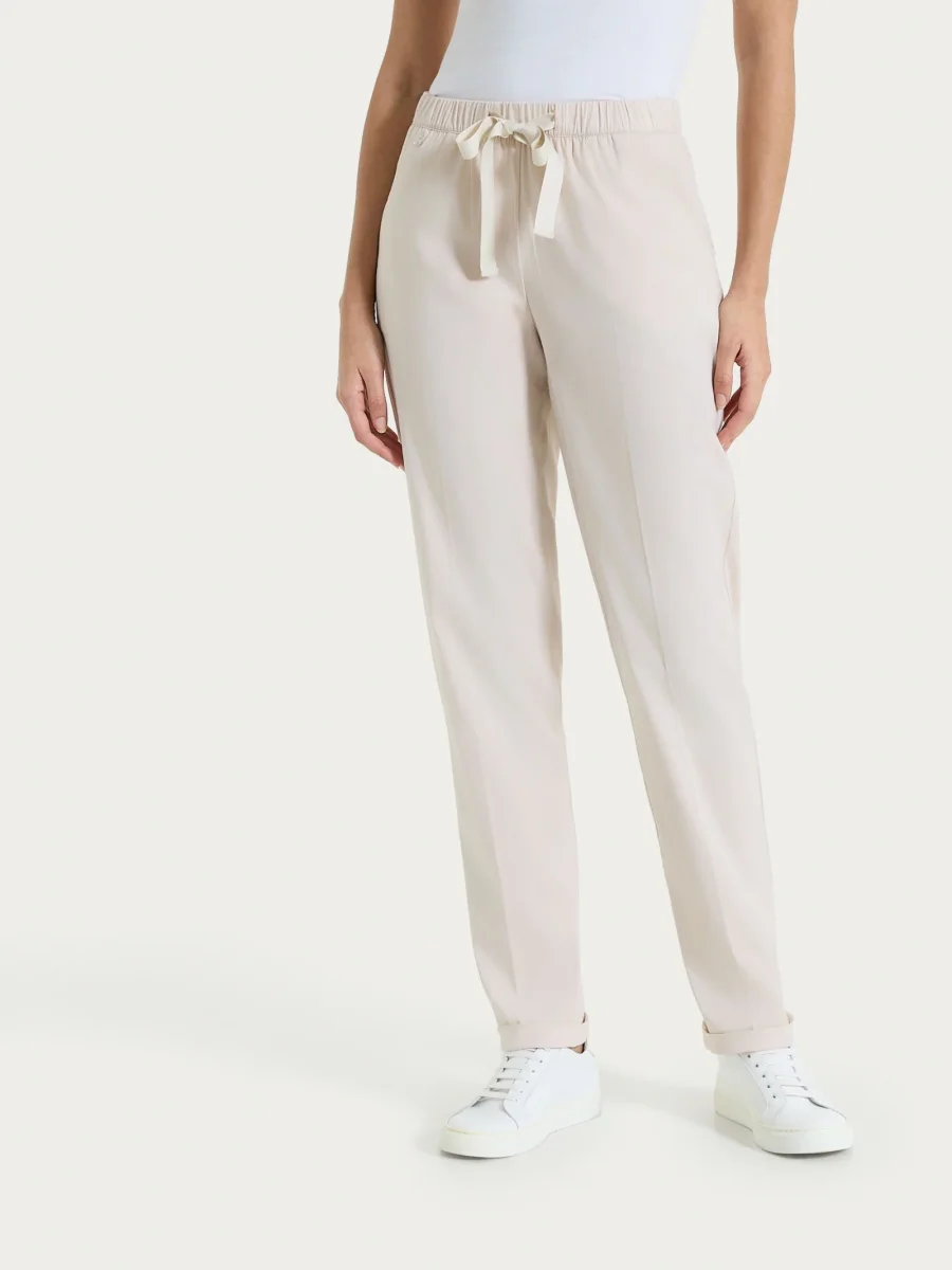 Questo modello è costruito con vita elasticizzata, pratica coulisse tono su tono e con pratiche tasche laterali alla francese.