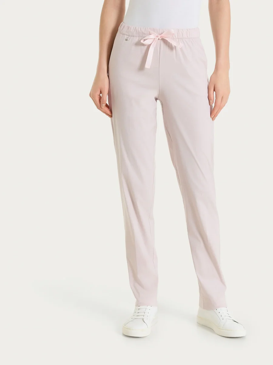 Questo modello è costruito con vita elasticizzata, pratica coulisse tono su tono e con pratiche tasche laterali alla francese.