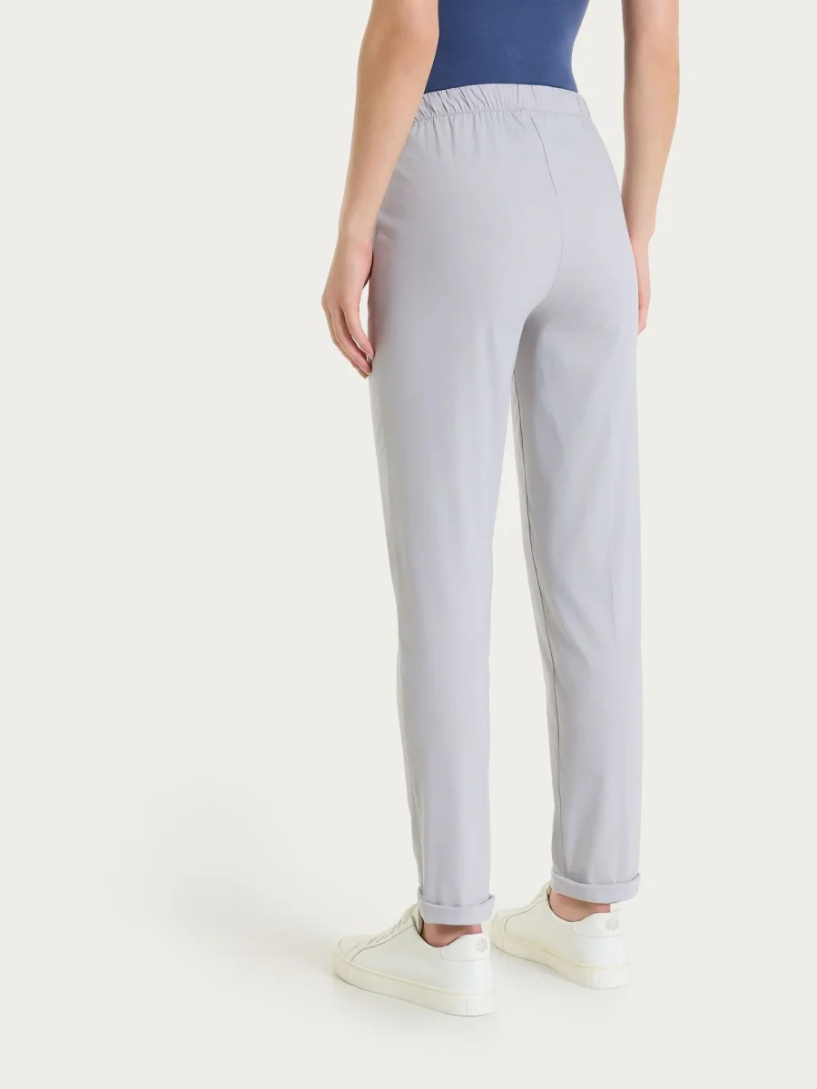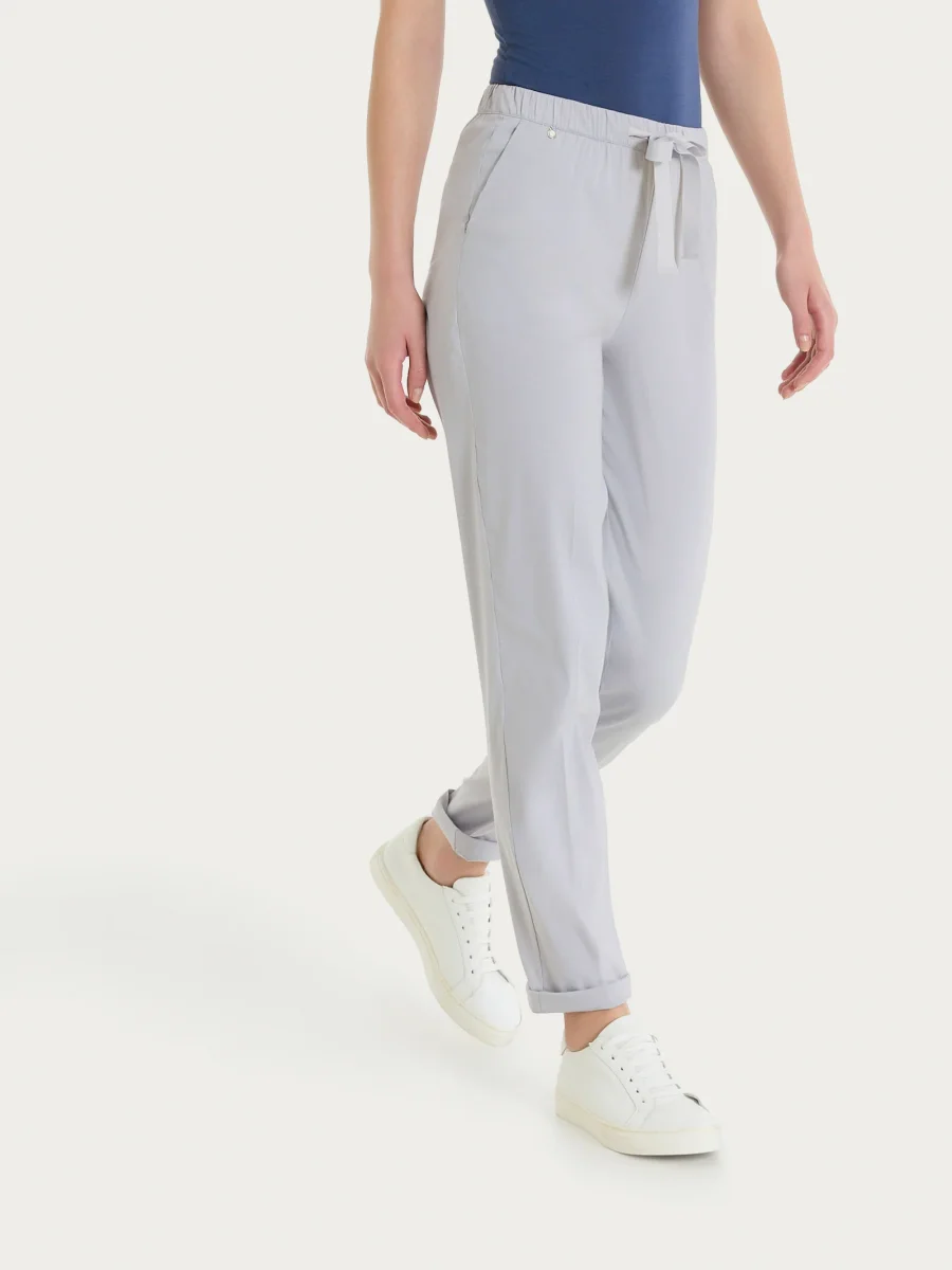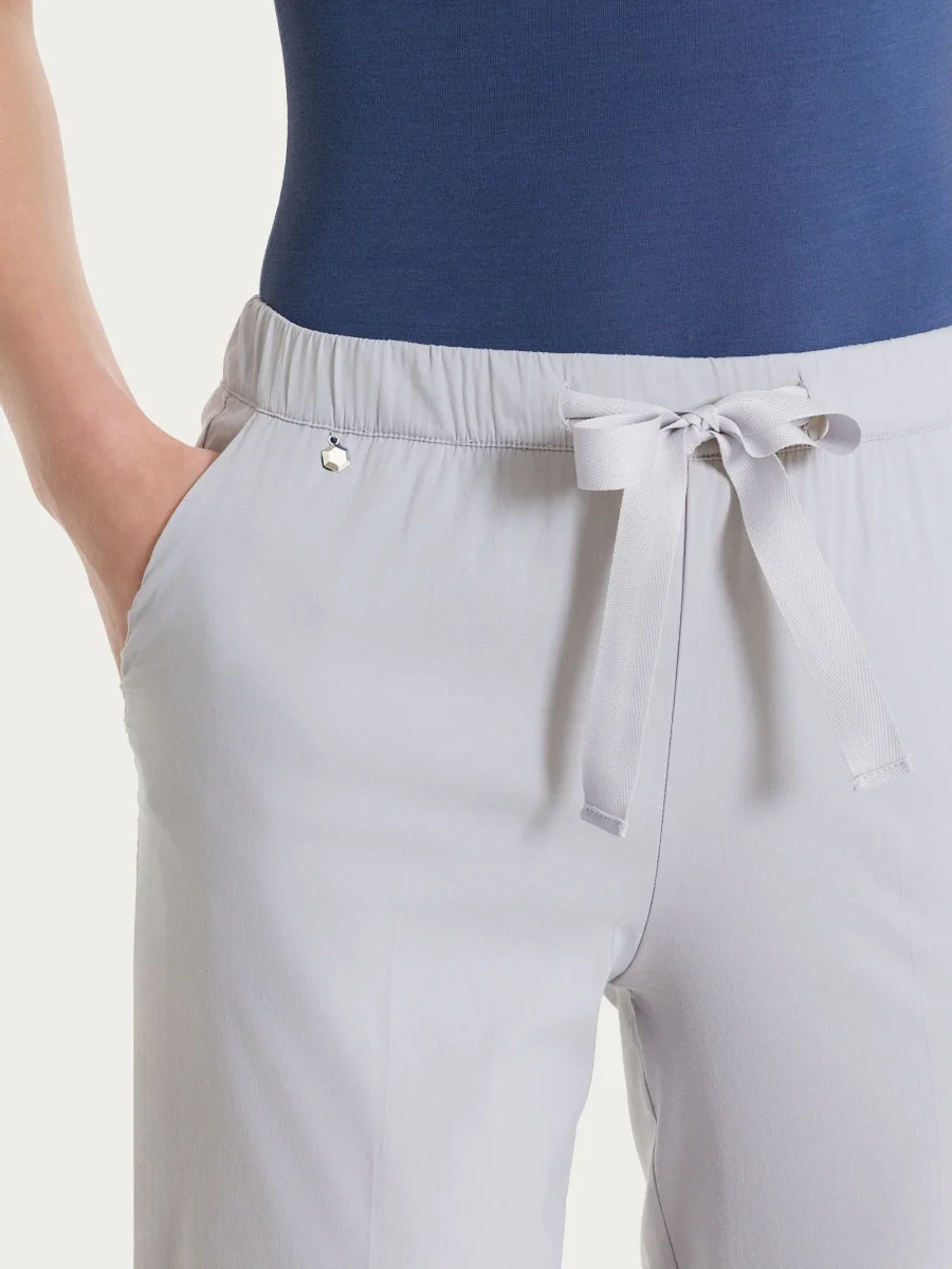Questo modello è costruito con vita elasticizzata, pratica coulisse tono su tono e con pratiche tasche laterali alla francese.