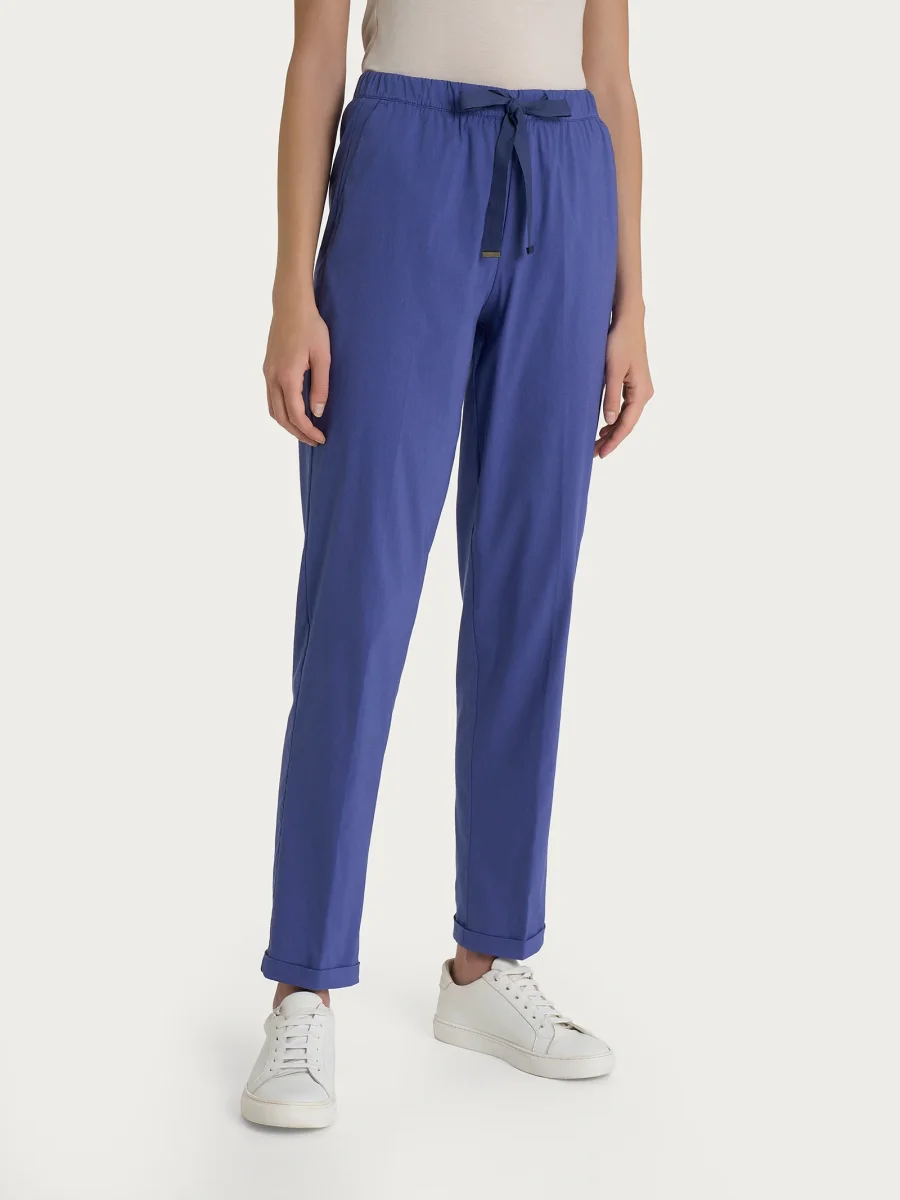 Questo modello è costruito con vita elasticizzata, pratica coulisse tono su tono e con pratiche tasche laterali alla francese.