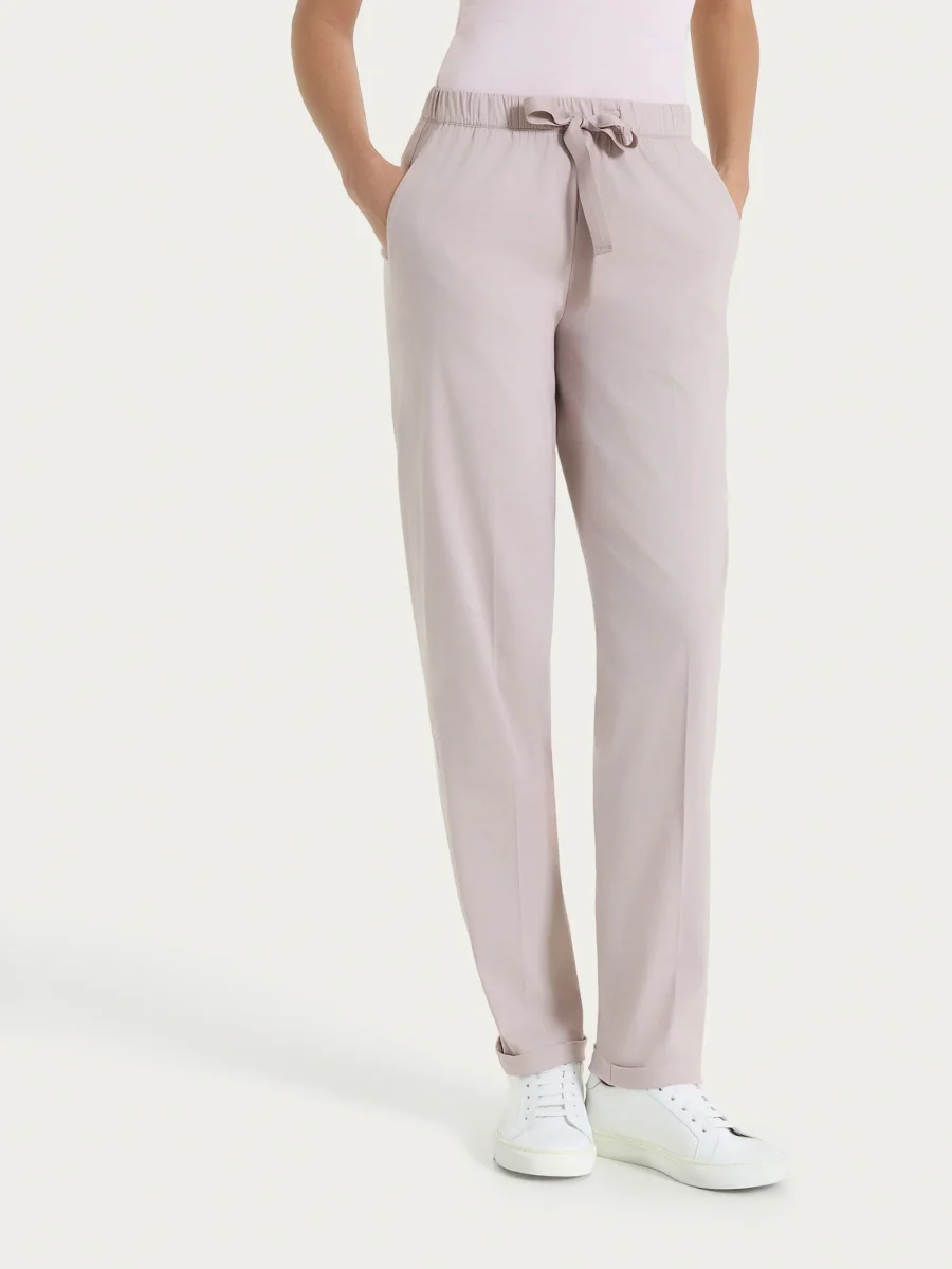 Questo modello è costruito con vita elasticizzata, pratica coulisse tono su tono e con pratiche tasche laterali alla francese.
